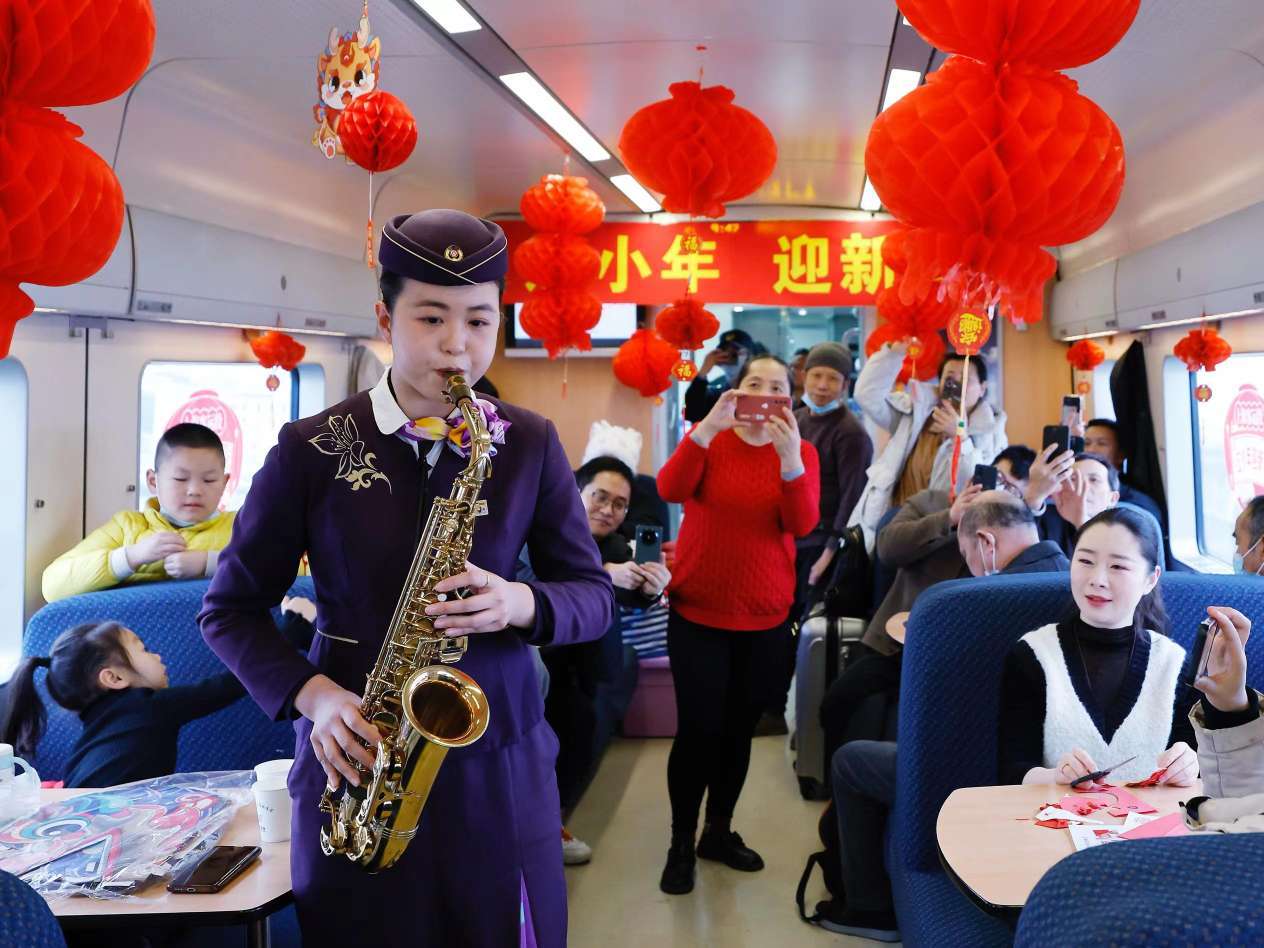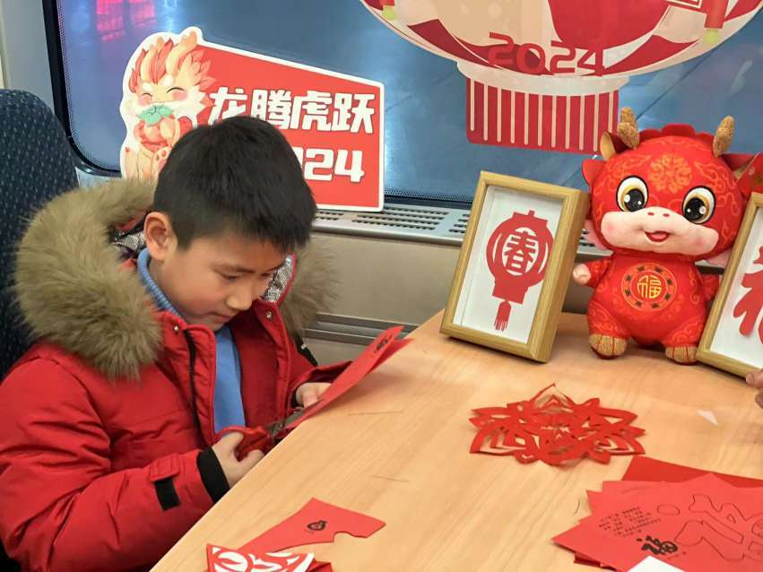 主办方表示,希望在传统节日到来之际,通过车厢内的年味活动,让旅客们回家旅途上增添快乐和暖意。