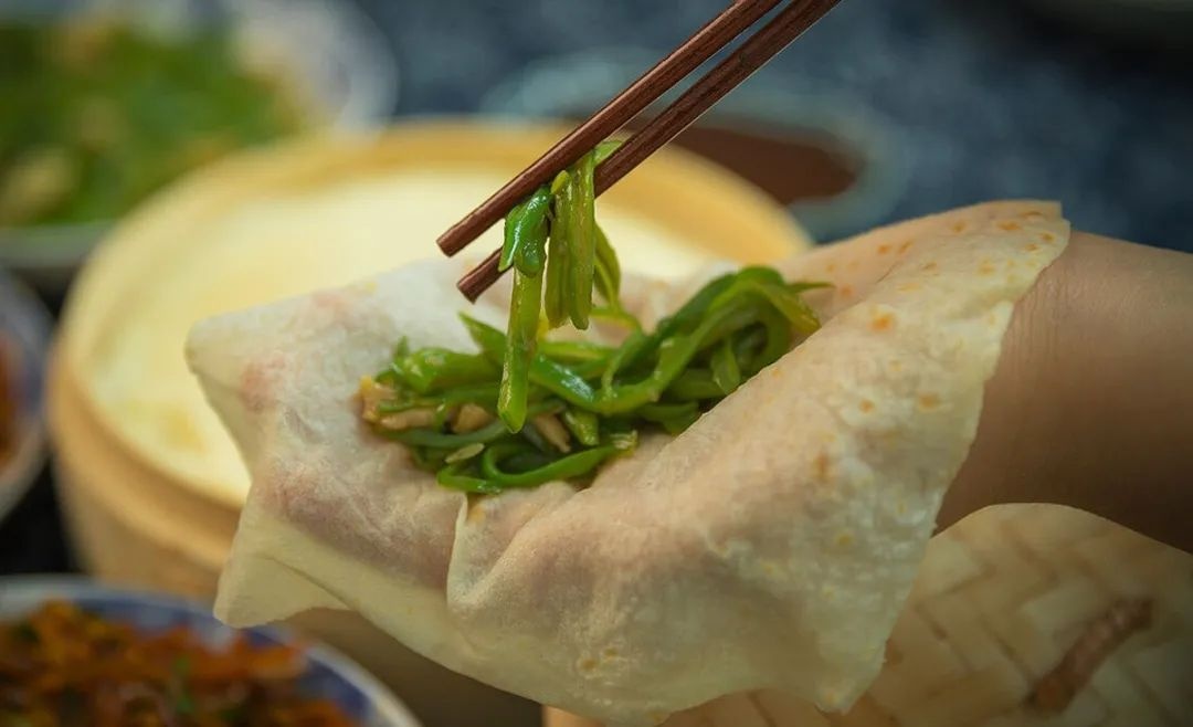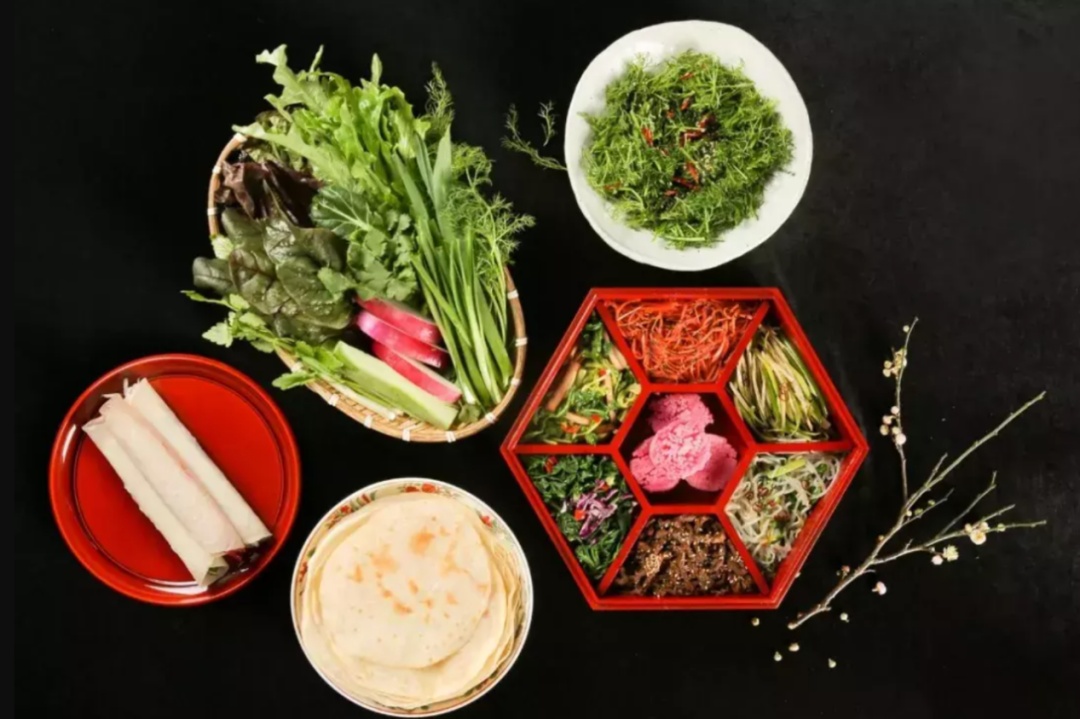 到了宋元时期,春卷的雏形出现了,即将春饼两头粘上,炸成“油煎卷”食用。从魏晋时期的五辛盘,到唐宋时期的春饼、春卷,春盘里的食材在历史更迭中越来越丰富,立春时节味蕾的春意也是越来越浓。