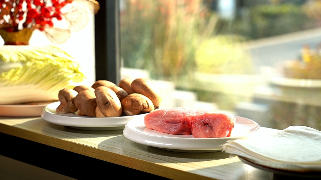 先准备好新鲜的春卷皮,白菜、香菇,猪肉,以及调味的盐、胡椒粉、酱油、料酒和封口用的水淀粉。