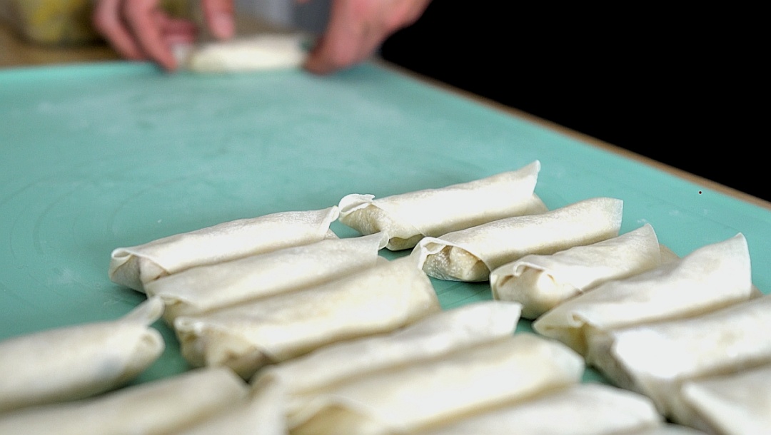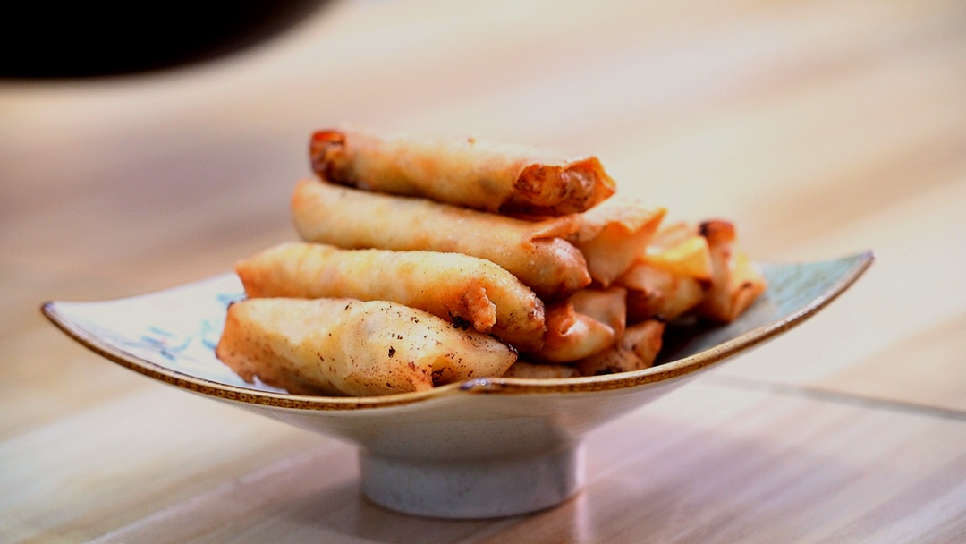 ①卷春卷的时候,要稍用点劲,确保春卷完整性,避免下锅后散开。