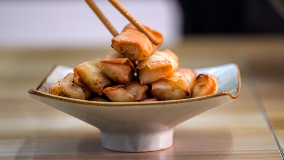 最后,圆滚滚、金灿灿的春卷就制作完成啦!一口咬下去,酥酥脆脆的,内陷鲜汁唇齿留香,一口便能感受到春天的暖意和美好。
