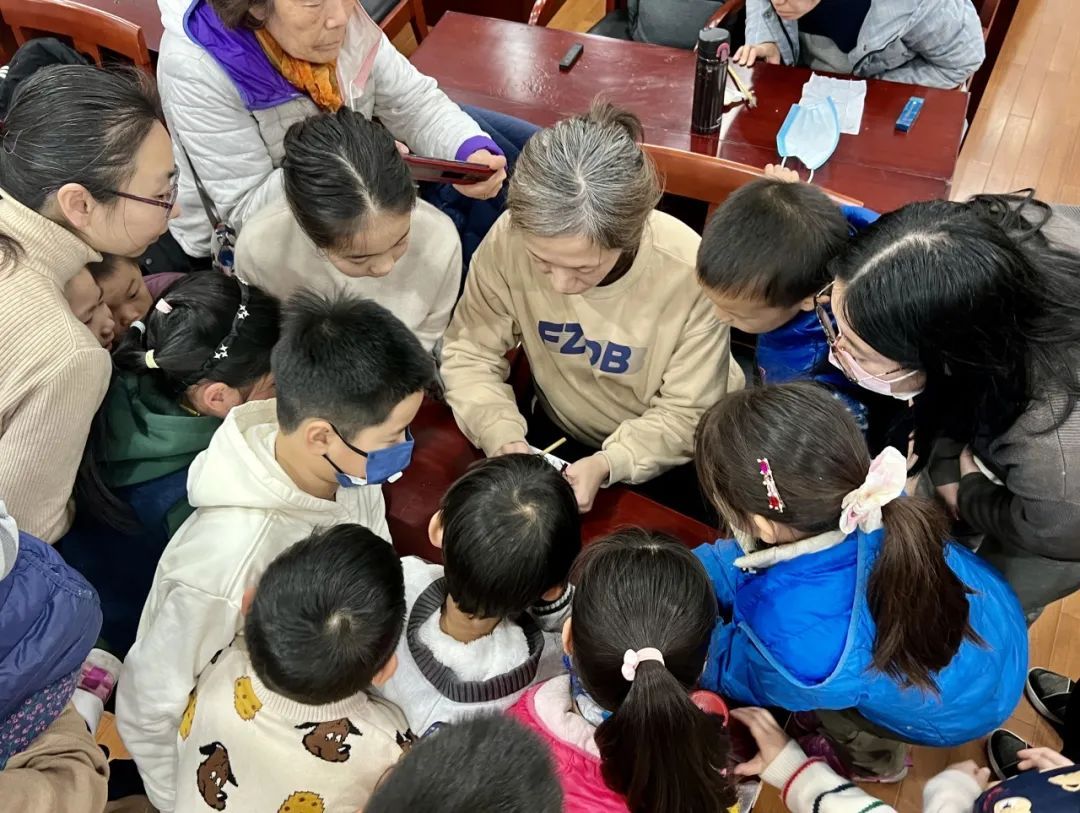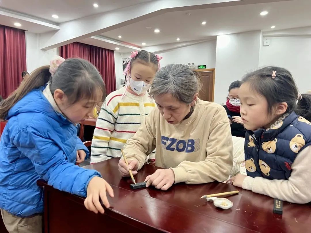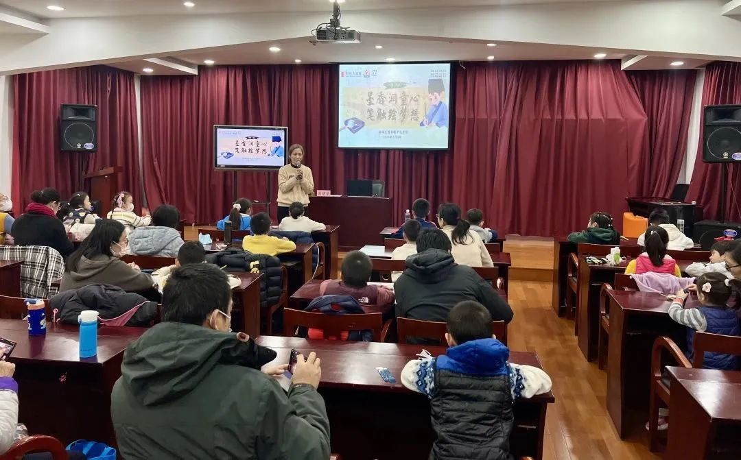 主讲人刘建华是曹素功非遗制墨技艺描金艺术传承人,对墨锭描金的技艺有着深入的研究和理解。为了让孩子们真切感受到曹素功海派徽墨之美,她为孩子们讲述了曹素功墨锭的历史渊源、制作流程以及描金艺术的独特技艺,用生动有趣的语言,引导孩子们一同欣赏精致的墨面,让大家对传统艺术的韵味和美感有了更深的体会。