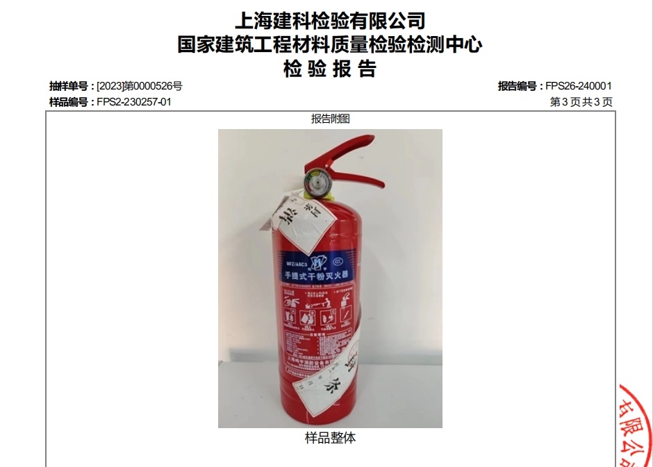 佘山镇茸达苑、茸绣苑、茸腾苑三小区日前置换了一批灭火器,经区消防救援支队抽样送检,检验报告显示该批灭火器质量合格。而此前,三小区采购的一批由南昌真荣消防设备有限公司生产的手提式干粉灭火器被鉴定为不合格消防产品,现松江消防、公安、市场监管部门已对该公司立案调查。