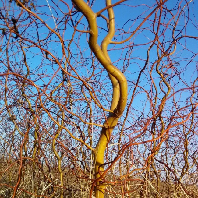 龙爪柳是旱柳的原变种。枝干不规则曲折或卷曲,恰似长波浪卷发。柳叶尖端翘起,如龙爪尖得名。