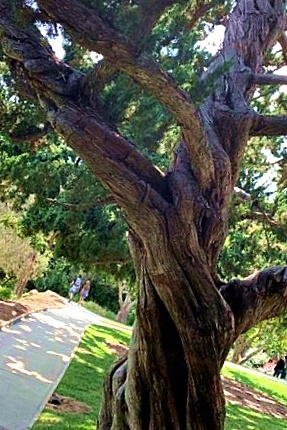 龙柏是上海比较常见的一种常绿植物,它是圆柏的变种。树冠狭圆柱形,树干和小枝均螺旋扭曲向上,犹如蛟龙腾转。