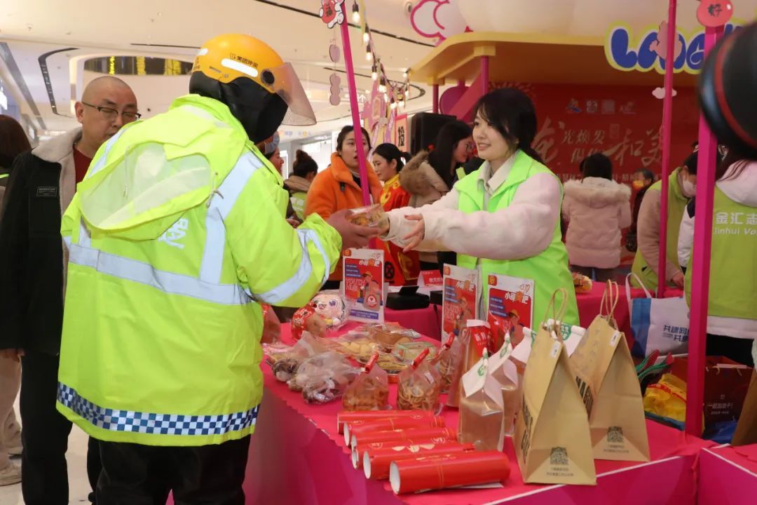 龙年贺岁 平安喜乐 HAPPY NEW YEAR 兔年走到尾声,龙年传来新声 不知不觉间 大家期盼的春节马上就要到了 来到城市的各个角落 喜庆的装扮、欢乐的歌声、“龙”重的活动 都能让你感受到愈来愈浓的年味 这不 金汇镇也举办了一场新春活动 与市民朋友们一同迎新春、庆新年 现场可是老“闹忙”了 快一起来看看吧 2月4日下午,奉贤区“我们的节日·精神的家园”春节主题活动(金汇专场)在金汇龙湖天街举办,活动大力弘扬中华民族优秀传统文化,充分挖掘春节这一传统节日深厚的文化内涵与时代价值,为市民群众营造喜庆热烈、安定祥和、节俭文明的节日氛围。 偒傣民俗摊位 独特的龙年布置吸引了不少市民朋友前来游玩。“金小和”“匯小美”也来到了现场,在签到处欢迎朋友们的到来,小朋友们准备了精彩的舞龙表演为大家暖场。领取了集章卡后,便可到各个摊位体验春节民俗。 动动手做个龙年翻花diy、动动脑来个知识猜谜,了解一下有意思的偒傣文化。在糖葫芦和糖画的摊位前,也早已大排长龙。只见非遗传承人拿起勺子,一套行云流水的动作,没几秒钟的工夫,一条栩栩如生的龙便完成了,引得小朋友们连连叫好。 “绘”添福小栈 书法达人们来到现场为市民朋友们写福字、送春联。当然,大家也可以自己动笔,写下新一年的祝福、新一年的期盼。 此外,现场还展示了由全镇中小幼学生创作的“龙年福画”,一幅幅形态各异的龙画吸引了大家的注意,它们或可爱,或霸气,充满了孩子们的巧思。在选出心中的“No.1”后,便可在一旁敲上印章,投上一票。 陪你过大年 现场还开设了“小哥青吧”。为了给客户按时送餐、送货,很多时候“小哥”们风里来雨里去,自己却连吃上一口饭的时间都没有。于是,镇团委便联合了龙湖的爱心商户,为小哥们提供爱心食物,送上新春的祝福。“这个时间点能有东西垫垫肚子,真是太感谢你们了!”一位外卖小哥说道。 此外,现场还有“请你看大片”的福利活动,镇总工会为成功报名的留沪过年的新就业群体兑换福利——龙湖天街影城电影票,让他们过年不孤单!在“抱福桶”摊位处,市民群众可以在吉祥卡片上留下自己的新年愿望,沾沾新年福气。 当然,如此好玩的活动也必须留下好看的瞬间!微笑照相馆志愿团队也在此设摊,为市民朋友们定格幸福时刻,并将照片即刻打印,欢欢喜喜迎龙年。 “耶,一对玩偶,真好看!”体验完所有活动,集完章的朋友们便可以凭卡片到入口处抽取红包,兑换精美礼品,为大家送上新年第一份礼物! 诚意满满的红包 热热闹闹的集市 欢欢喜喜的相片 …… 希望这场活动让大家体会到了 属于偒傣的浓郁年味儿 春节的脚步越来越近了 衷心祝愿各位朋友们 龙行龘龘,阖家幸福