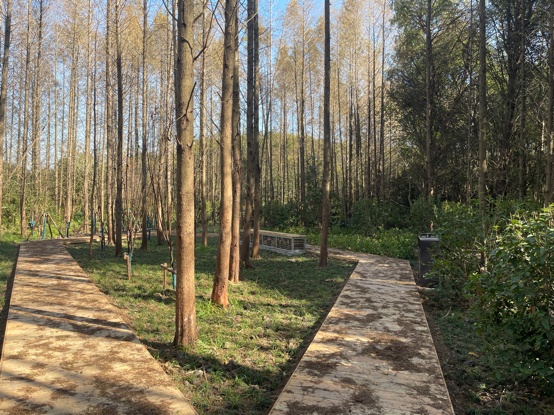 走进开放休闲林地,银杏、雪松、香樟、女贞、柳树各色绿植尽情舒展,一条条步道蜿蜒绵亘,在树木掩映下若隐若现,野趣横生。据悉,去年建成的8个开放休闲林地中有4个为区级开放休闲林地,分别位于九亭镇、小昆山镇、泖港镇和永丰街道,总区域面积为668亩。此外,松江还建成4个镇级开放休闲林地,分别位于叶榭镇、泖港镇、石湖荡镇和泗泾镇,总区域面积为340亩。
