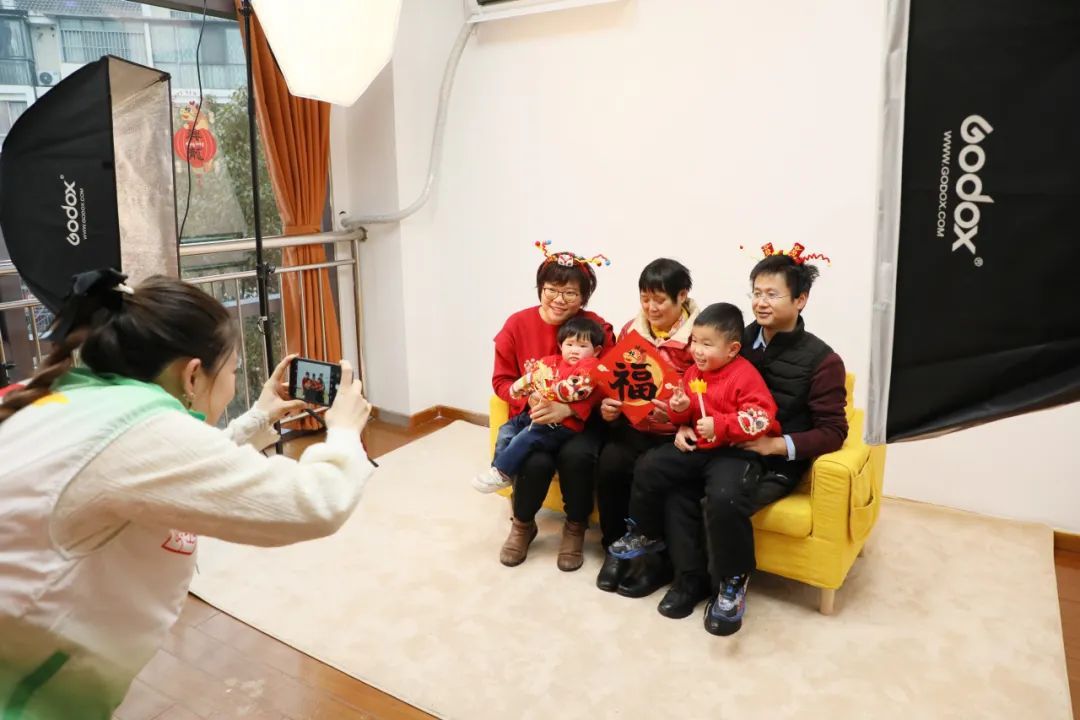 很快现场便热闹了起来,前来拍摄的有一家三口的小家庭,也有祖孙三代的大家庭,气氛和谐友爱。