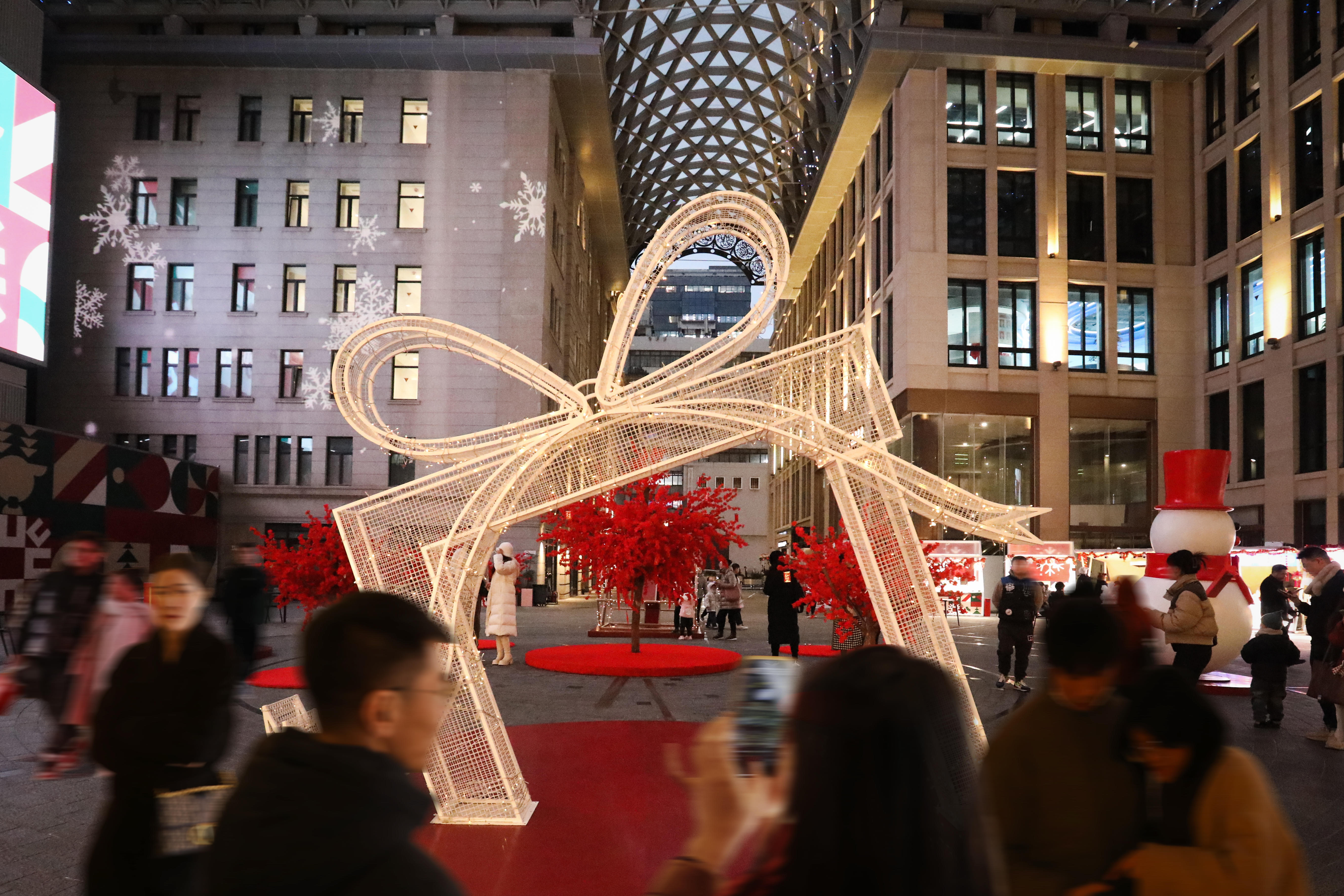 据悉,此次外滩中央的年俗市集汇聚了近百家商户,围绕龙年新春,打造幸福场景,在中庭中央的取景框、巨型礼盒、许愿树等,让喜欢拍照打卡的市民“一秒出片”。
