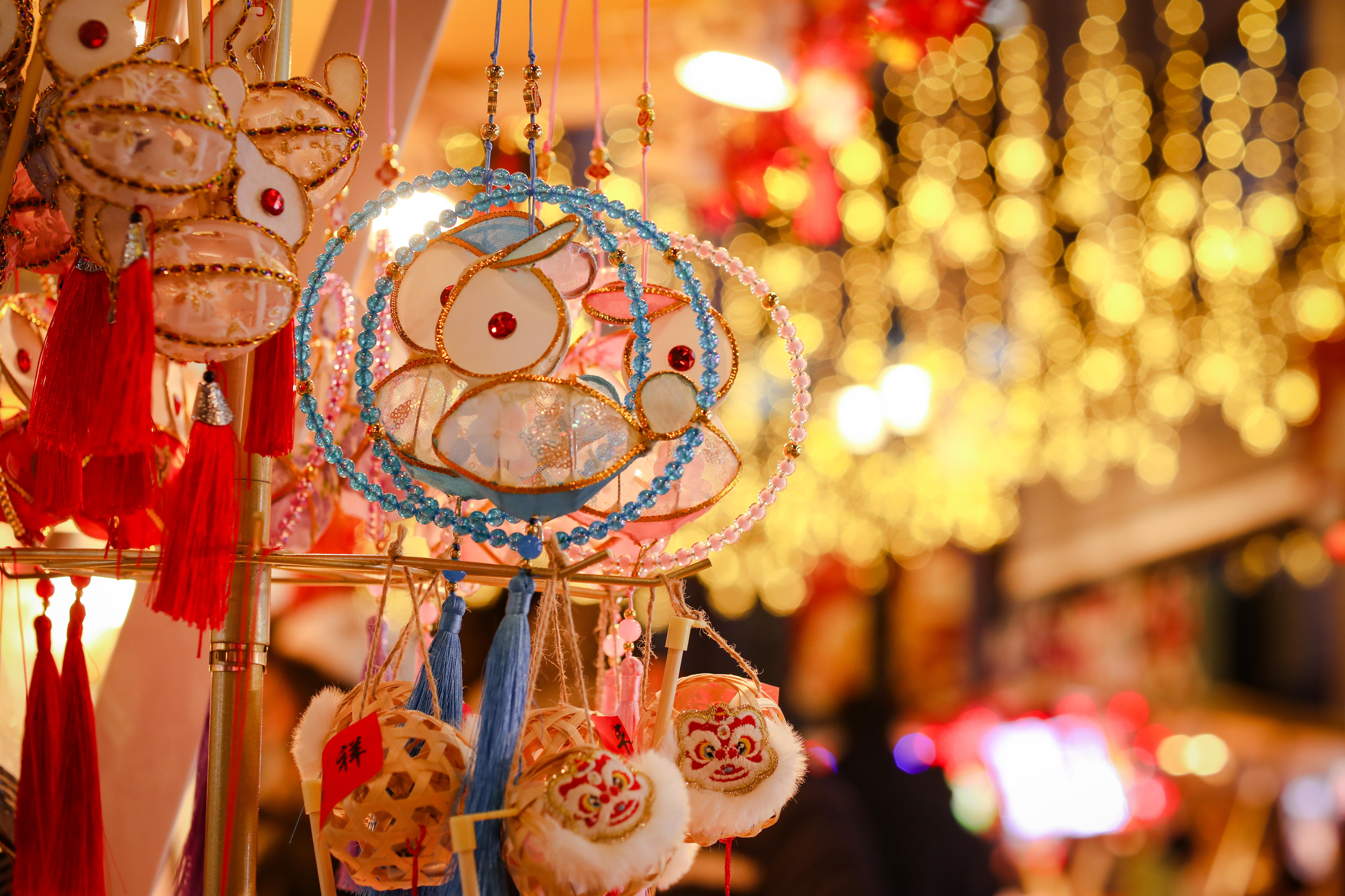 这些天,外滩中央广场的最美十字穹顶下,这里市集年味正浓,吸引了来来往往的游客。红红的中国结,憨态可掬的龙灯、兔子灯,随身佩戴的福字挂件等等,在这里应有尽有。