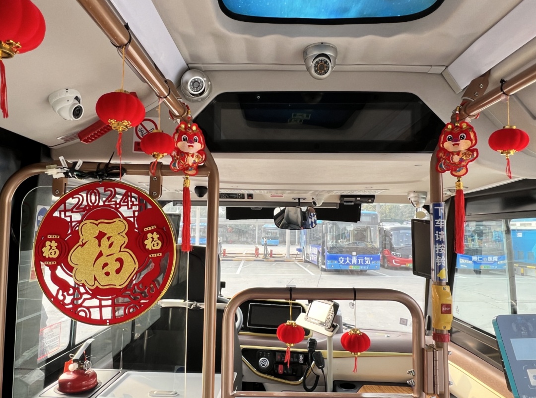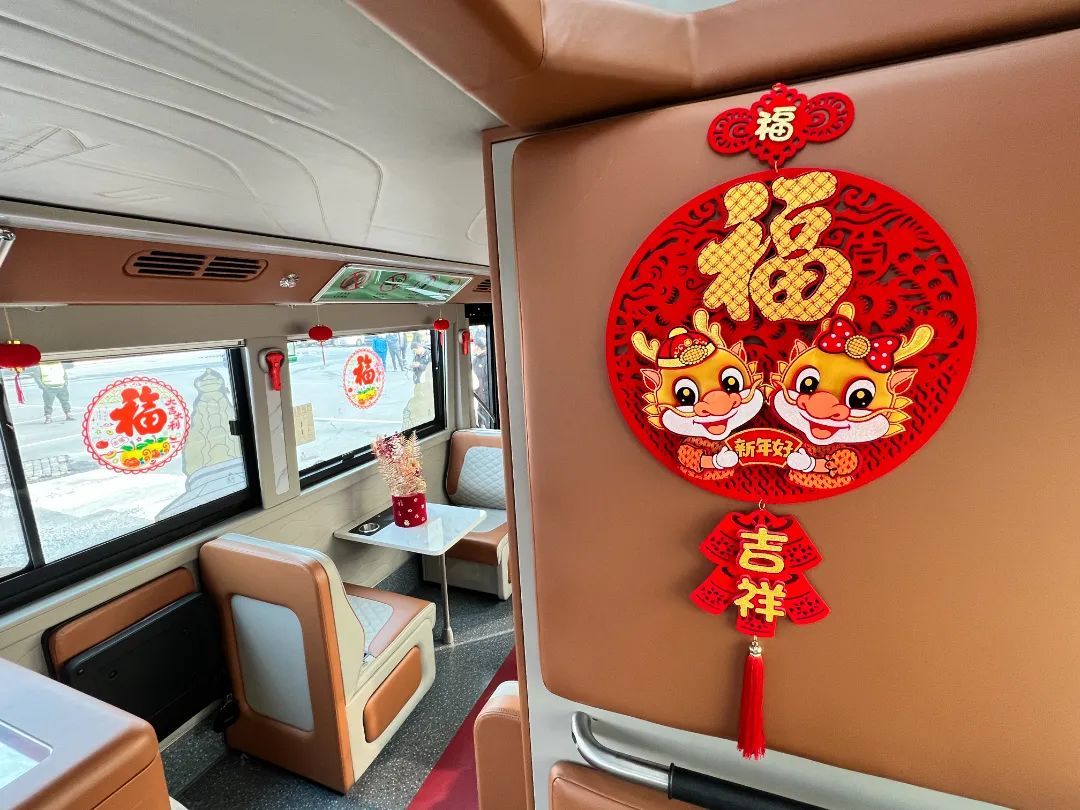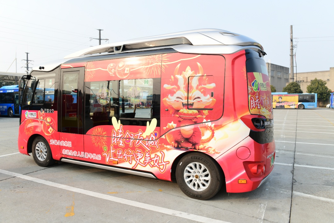 车身除了亮眼的中国红、吉祥的“龙”元素外,还分别涂装了鼋头渚、灵山胜境、梅园、惠山、阿福阿禧等主题画面,使市民感受锡城人文之美同时将喜庆、祥和的氛围感拉满。