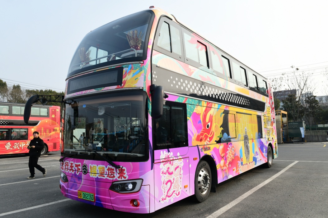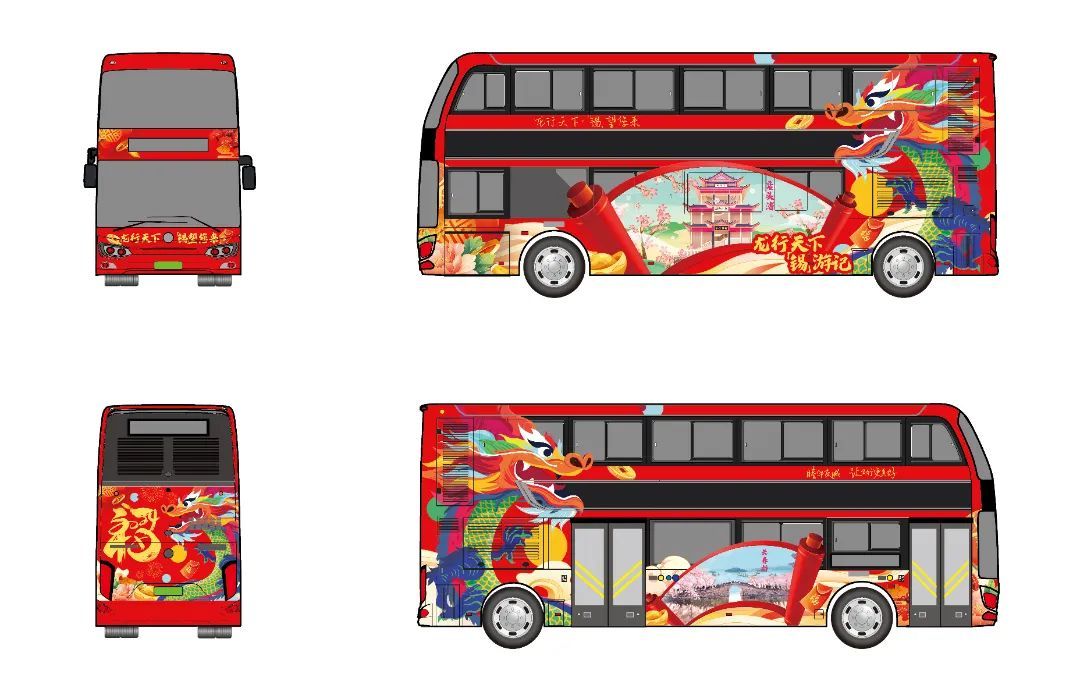 “龙行天下 ‘锡’游记”新春主题公交分布在“乐游无锡系列的旅游专线”双层巴士上,贯穿锡城核心区,覆盖锡城著名旅游景点。
