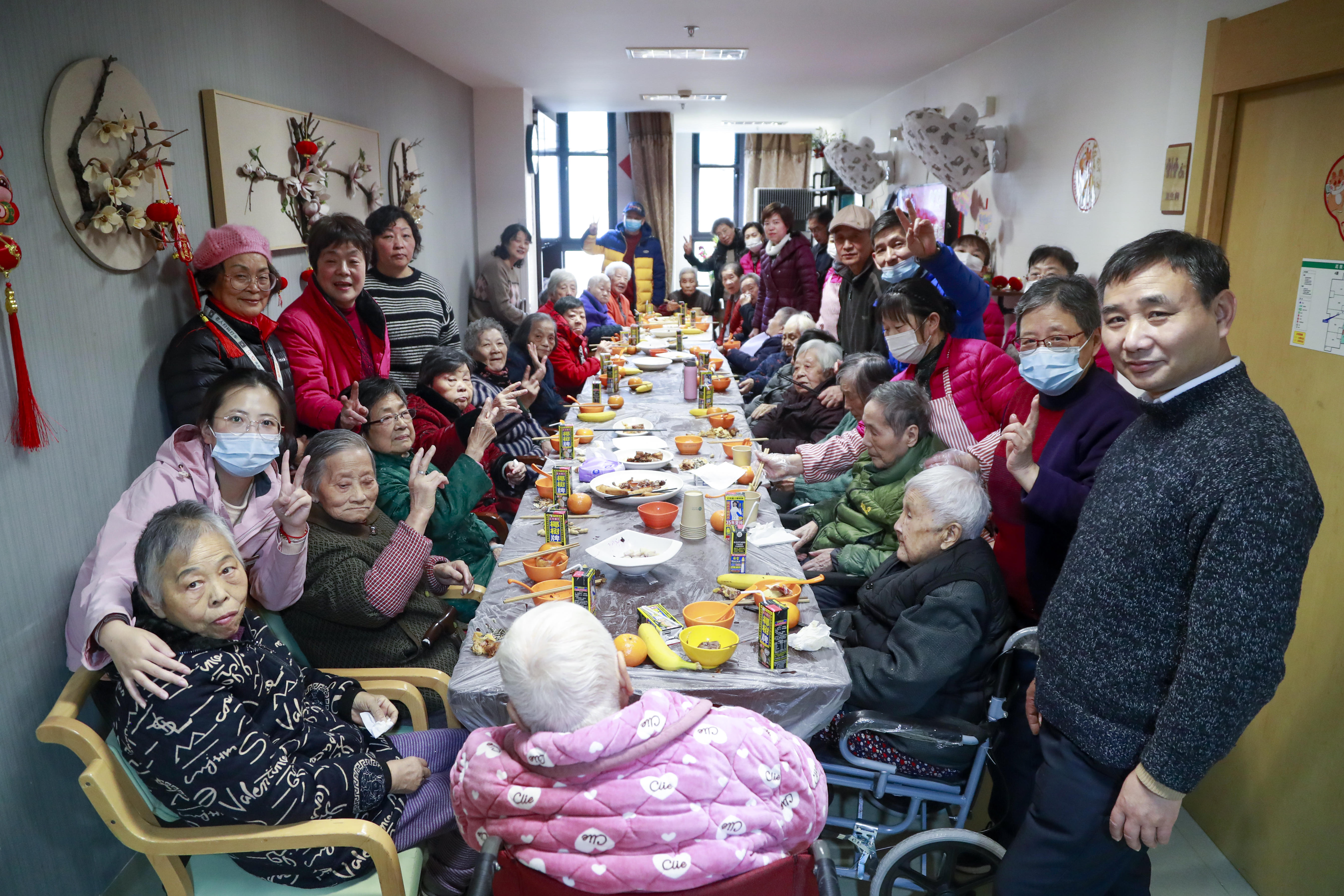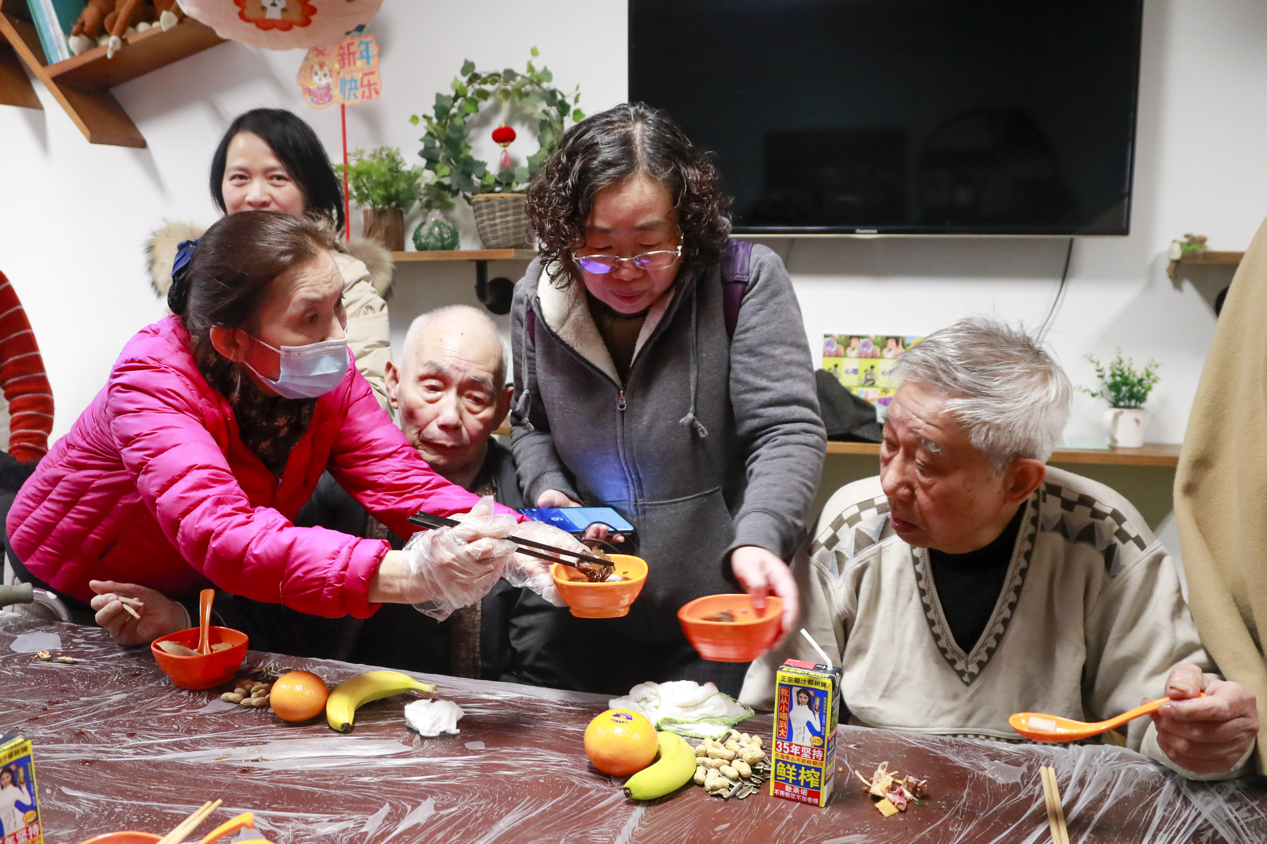春节期间,顾卞裘莉敬老院不仅准备了丰富的年夜饭,邀请老人家属一同围桌而坐,还举办一连串的演出、活动。喜庆的氛围下,刘艳芳感叹道:“其实,这里让我有了回家的感觉。”