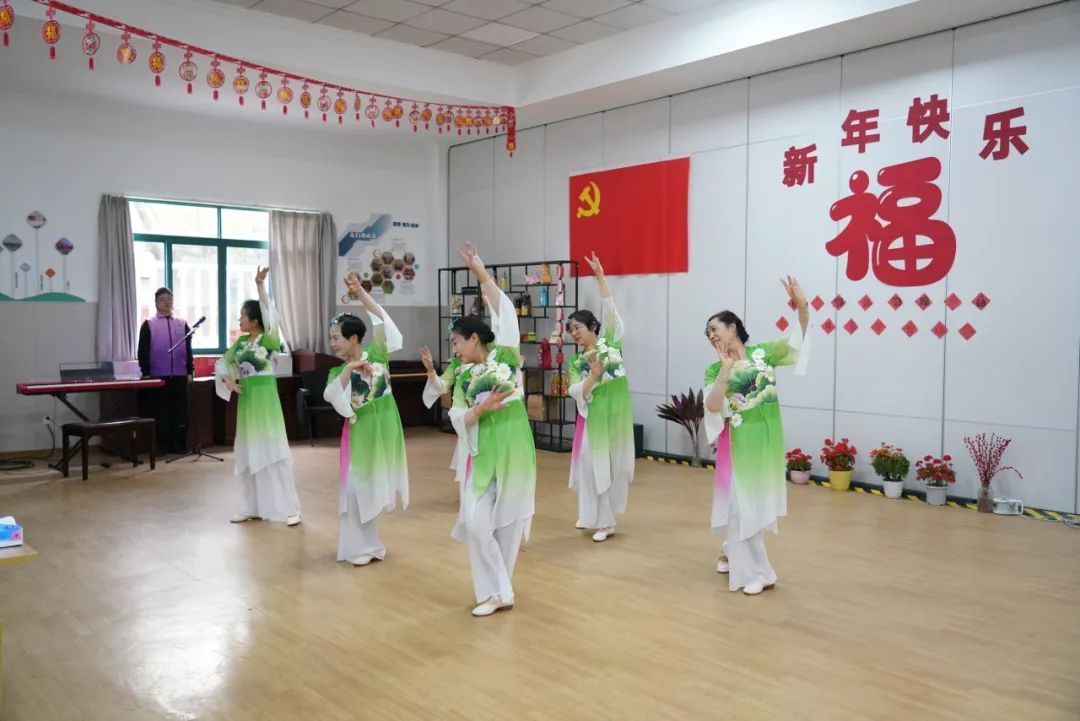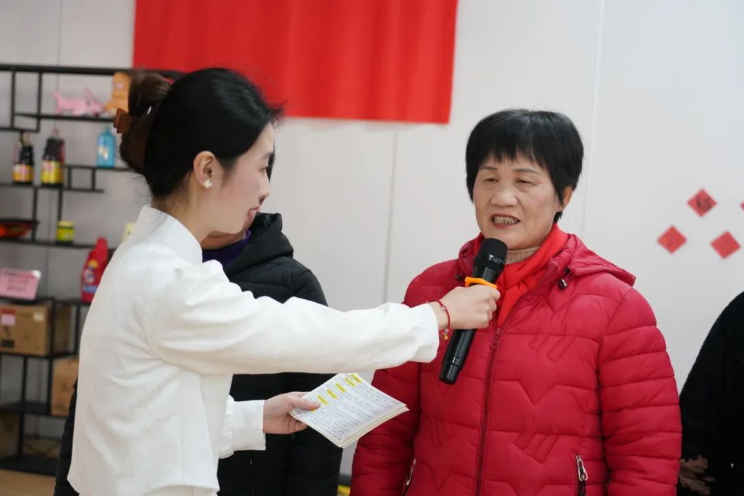 舞蹈串烧《新年快乐》,笑点密集,把活动气氛推向高潮;《黄梅悠悠》《有个姑娘》或刚劲有力,或灵动飘逸,每个动作都充满感染力;一支《风雨百年》更是舞出爱国情怀,唤起观众内心深处的情感共鸣。小游戏环节也是精彩纷呈,观众们沉浸其中,享受着欢乐的氛围、有趣的挑战和丰厚的奖品,为整个村晚增添了更多的乐趣和互动性。除此之外,活动现场直播点赞更是高达三万点赞量,这无疑是对村民公益达人、“民”星的认可与鼓励。