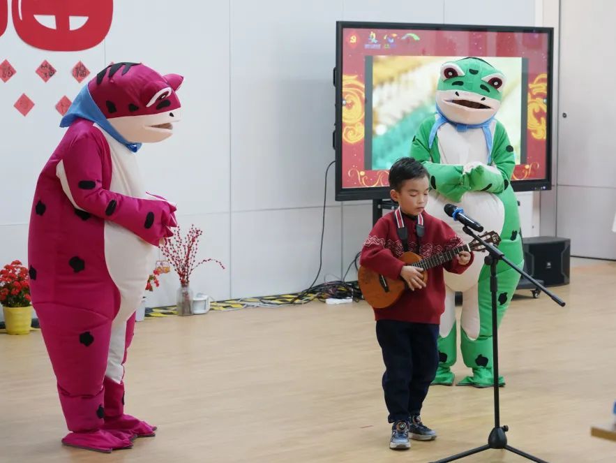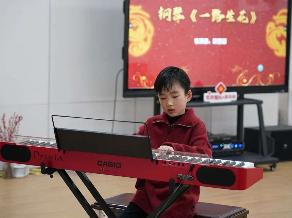 活动现场热火朝天、人声鼎沸,一首《Lemon Tree》唱出了少年一代对乡愁的敬意;快板、滚灯、空竹、沪剧演出等传统表演彰显传统文化之韵;悦耳的钢琴旋律、一首尤克里里版《小城夏天》更是让观众们在严寒的冬日宛如时空穿越,置身于夏日的热烈与美好之中。