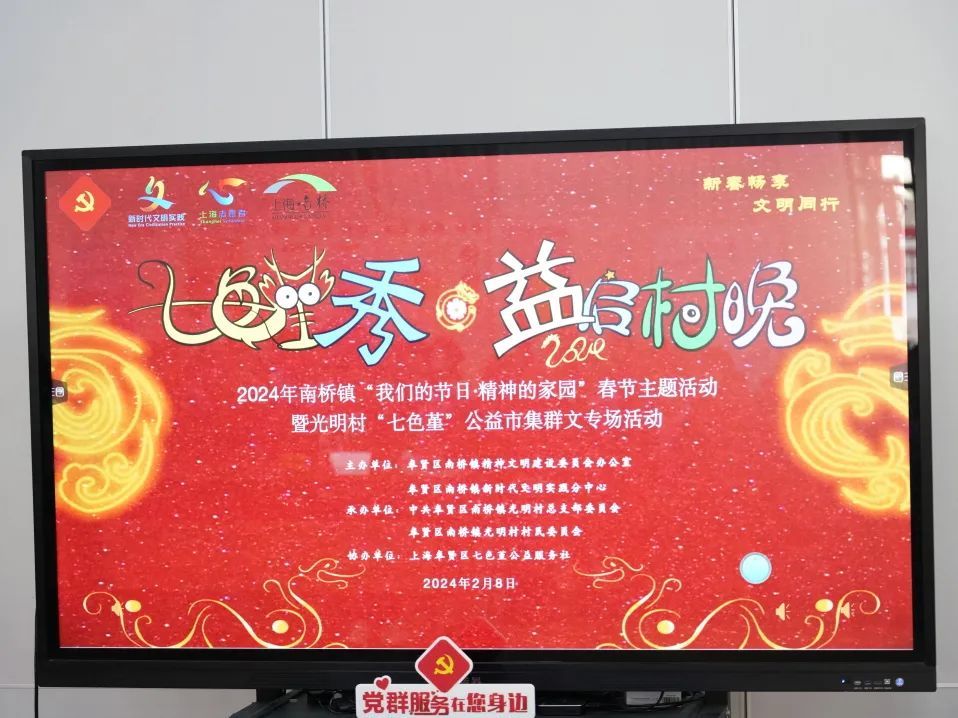 2月8日下午,由南桥镇文明办、新时代文明实践分中心主办,光明村承办,七色堇公益服务社协办的“新春畅享 文明同行”2024年南桥镇“我们的节日·精神的家园”春节主题活动暨“七色堇‘秀’ ‘益’启村晚”光明村公益市集群文专场活动在光明村火热开展。