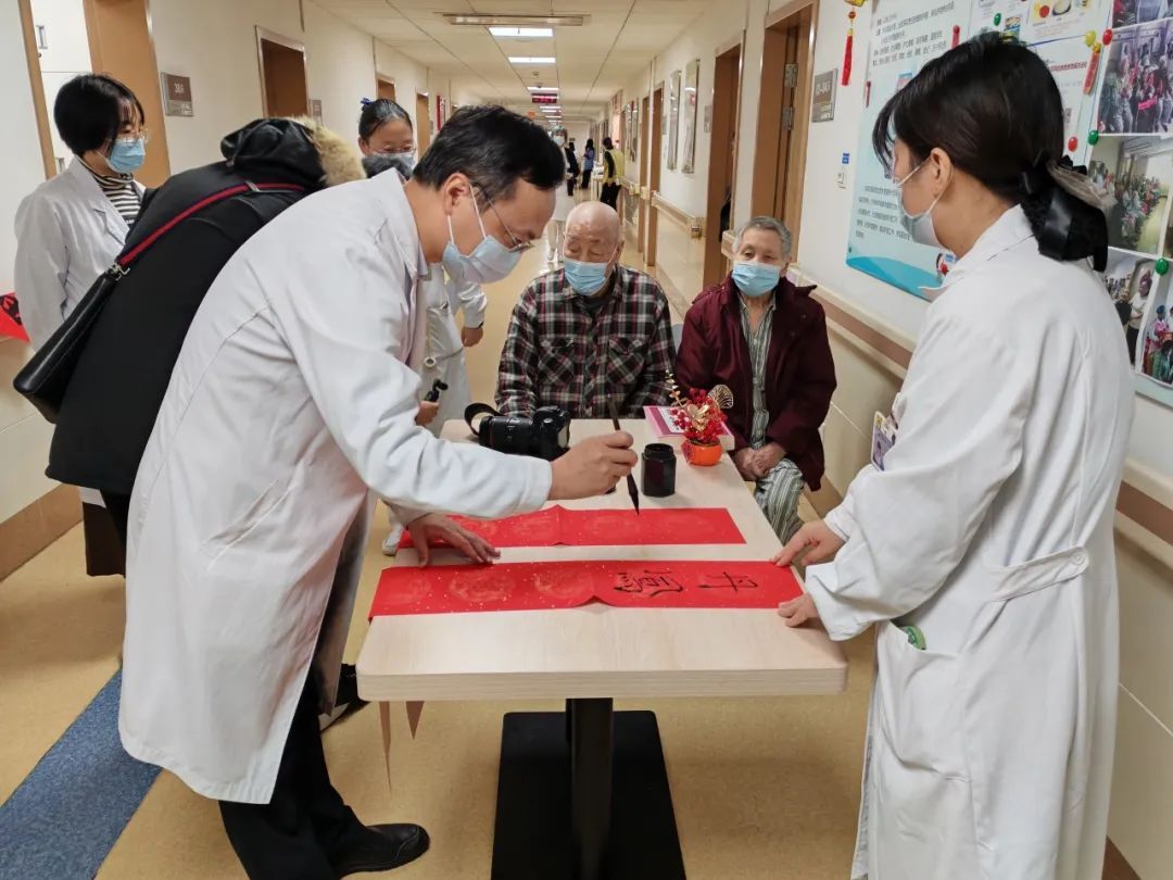 佳节前夕,医院还组织社会志愿者和学生志愿者书写慰问春联和“福”字,送至临床科室坚守岗位的工作人员手中,向他们送上节日的祝福和由衷的感谢。