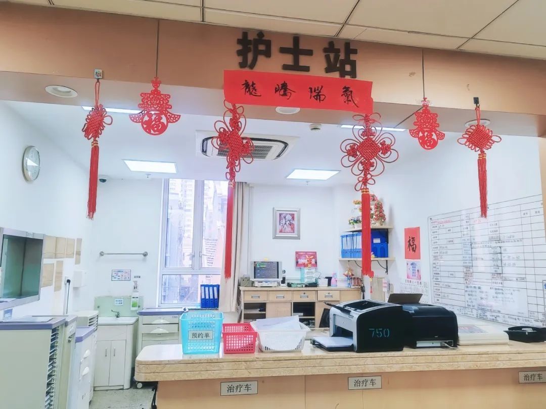 为了让留守的患者也能过个喜庆欢乐的春节,区人民医院的医护人员在病房的走廊上挂上红灯笼,门上贴了福字,把年味带进病房,温暖患者的心灵。