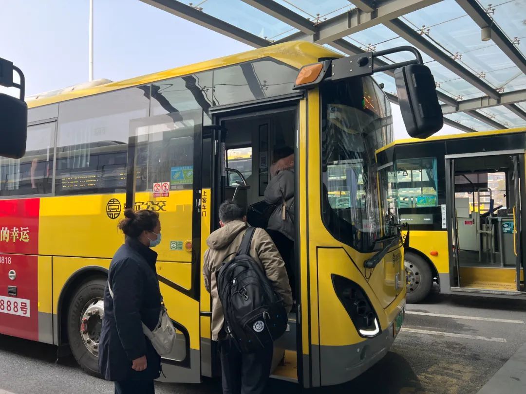 在上海嘉定客运中心,虹桥枢纽9路公交车迎来送往,将一批批的乘客送往虹桥东交通中心。抵达虹桥站后,乘客将再换乘火车、高铁或飞机返乡过年。