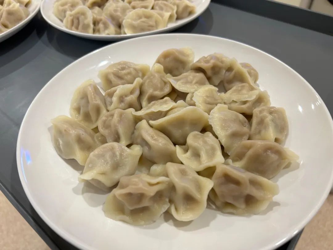 饺子包好后下锅煮,十几分钟后热气腾腾的饺子出锅了。