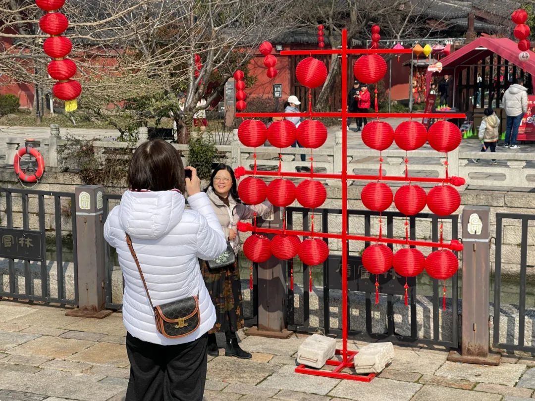 春节至,年味浓。正月初一上午,记者来到广富林文化遗址的富林台看到,红灯笼高挂,彩灯丝带交错辉映,一个个集市摊位沿着街道排开。现场红红火火的布置吸引众多市民游客前来拍照打卡,一派新春“赶集”的热闹景象。“在新春集市走走逛逛,感受浓浓年味,还能看到小时候的玩具,瞬间就能勾起我们对儿时过年的回忆。”市民时招弟说。