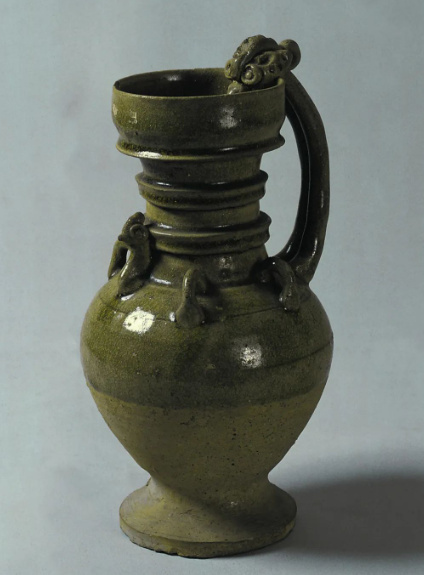 青釉鸡首龙柄壶
