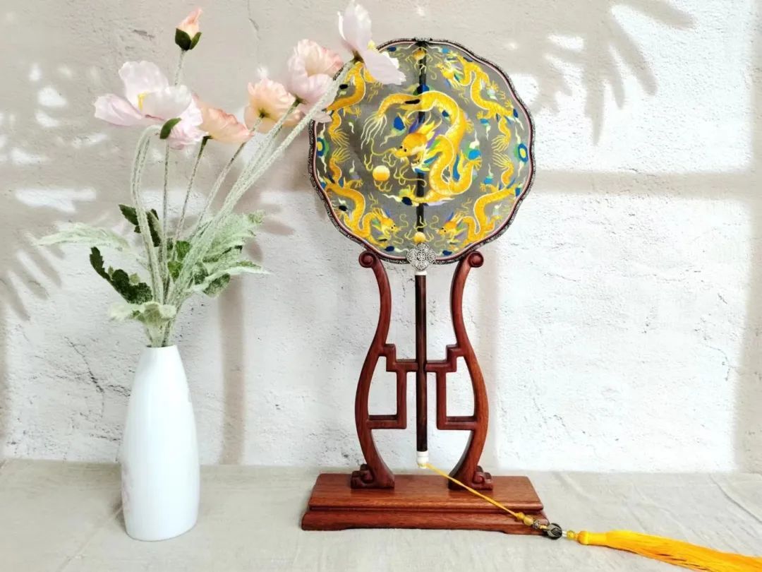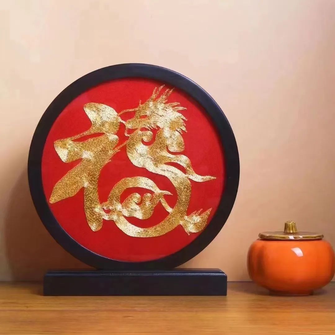 此外,陈碧娴工作室还创作了双面绣作品《五龙戏珠》,由两个人从正反双面同时绣,采用蜀锦包边,寓意五福临门;盘金绣作品《福龙》将金线用金丝一点点压在布料上,这种平金工艺,寓意以画入福。其中,双面绣作品《五龙戏珠》目前在嘉定文化馆展出,感兴趣的市民朋友可前往观赏。