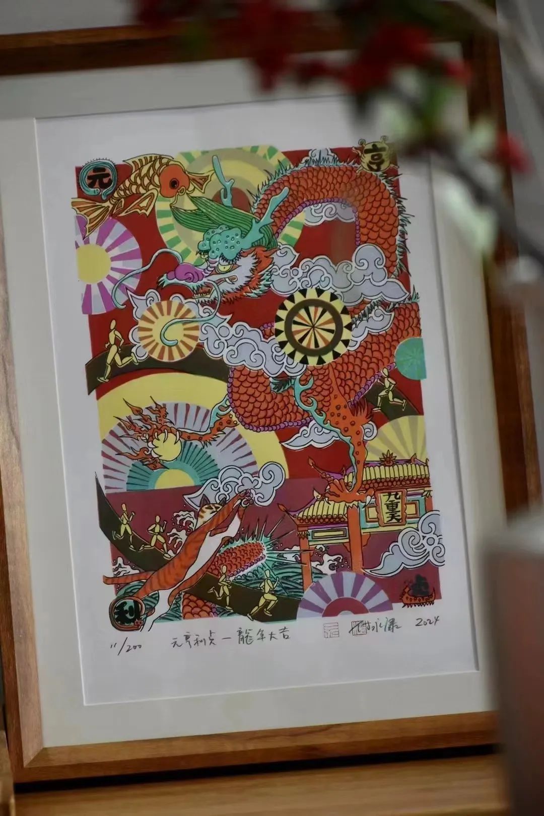 通过巧妙的颜色搭配,版画能呈现出不同的色彩风格,这幅《元亨利贞-龙年大吉》版画正在嘉定文化馆展出,想一睹风采的市民朋友可以约起来咯。