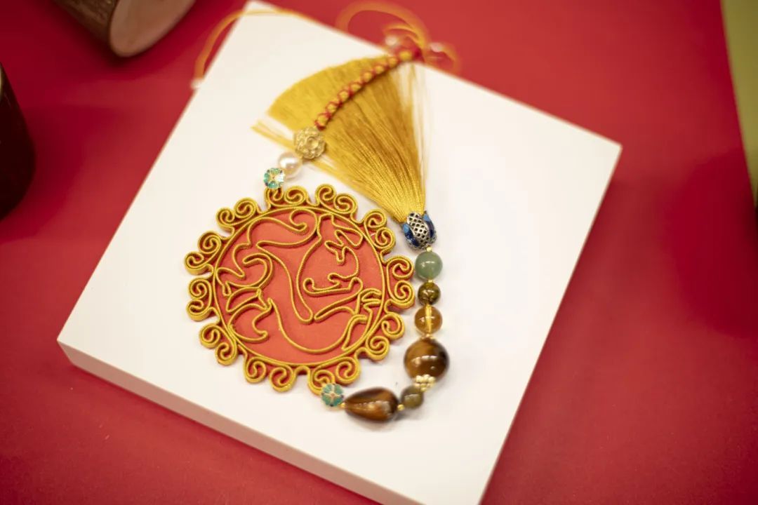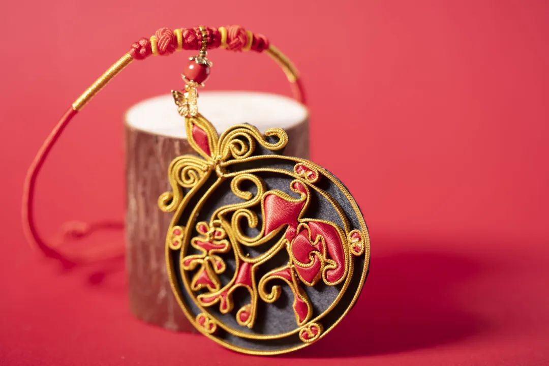 传统龙元素与非遗盘扣技艺相结合,会碰撞出怎样的火花?海派盘扣技艺第四代传承人张海莹设计并制作龙年系列盘扣作品,包括耳饰作品《双龙之月》、项链作品《福龙》、龙牌作品《龙瑞祥云》和副龙作品《红龙之光》,以文化贺新,以非遗寄意。