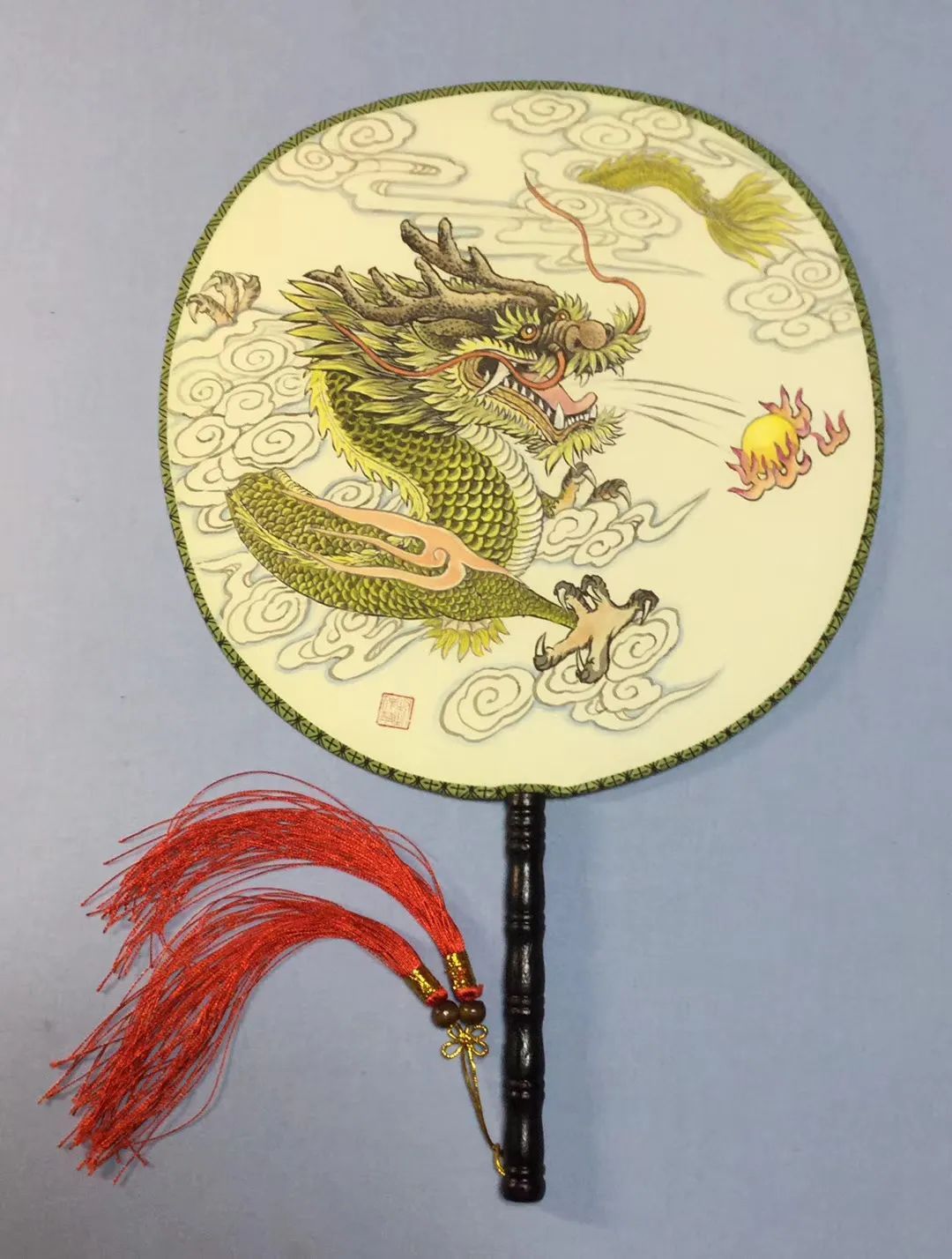 今年,封仲华还为属龙的好友绘制了一把《金龙戏珠》的国画团扇,画中的飞龙腾跃于云天之际,龙的姿态盘旋矫健,云气缭绕全身,躯尾时隐时现,有凌驾于九天外的劲疾风势。封仲华介绍:“颜色一定要有层次感,近实远虚,在实的地方反复多上几次色彩,突出重点,可以增强立体感。”