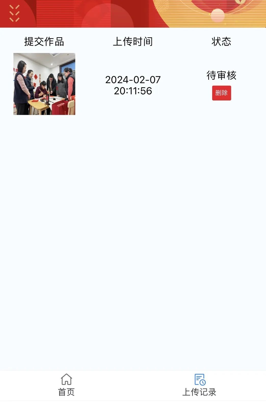 6.如需撤回,可在右下角“上传记录”中删除作品(审核过的作品无法删除)