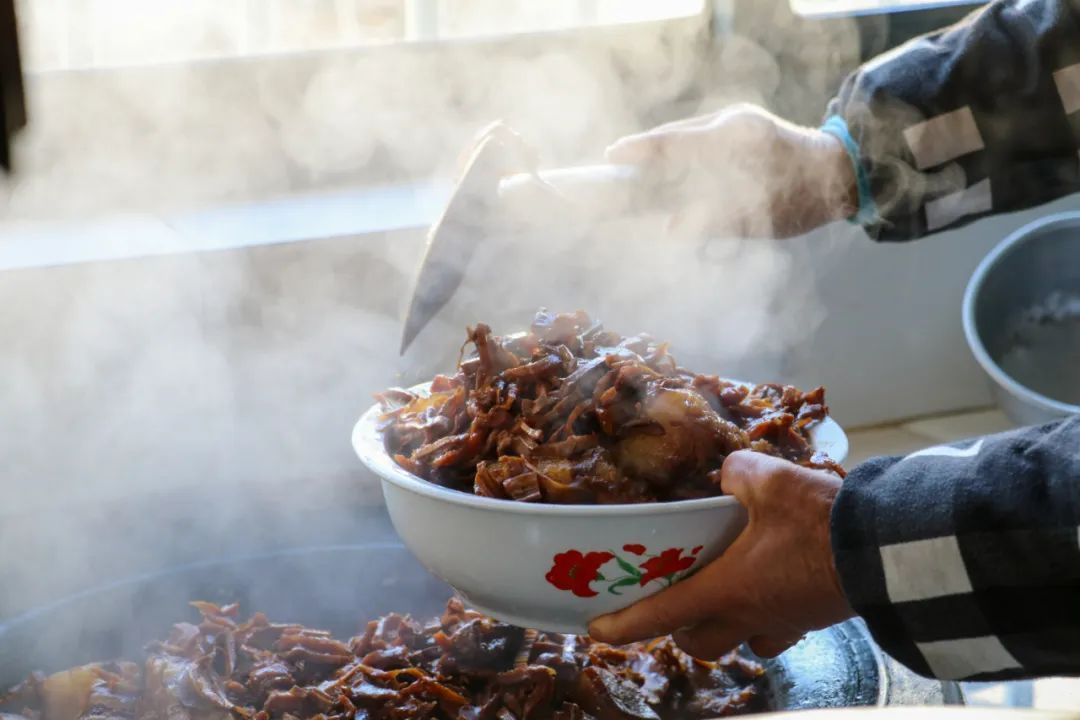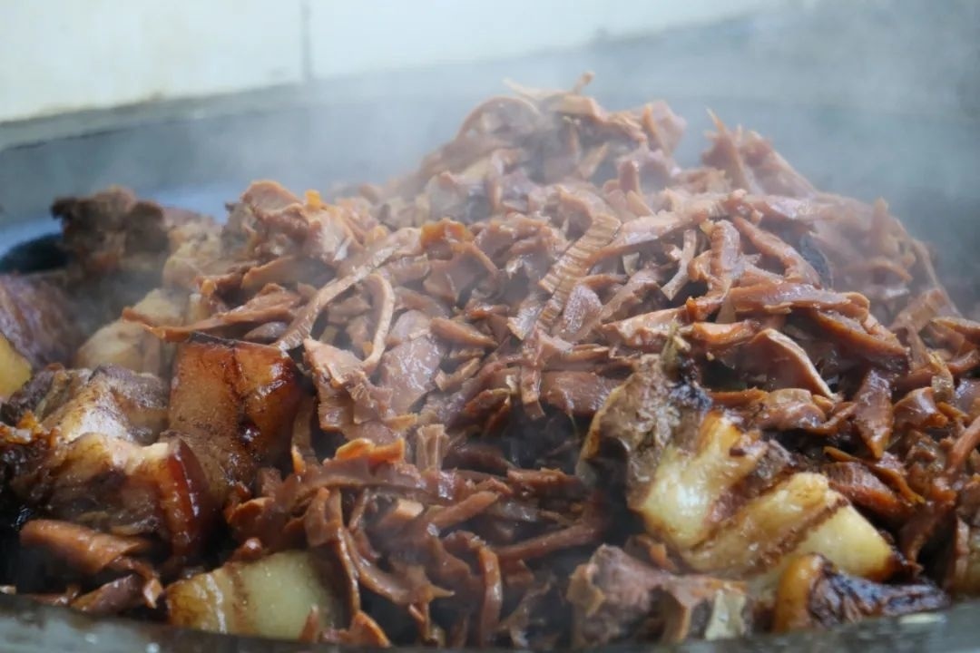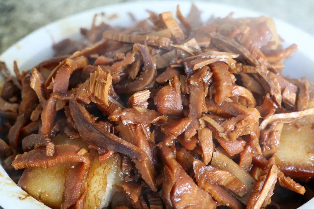 张明华说:“金山人过年几乎每家每户都烧笋干烧肉。一般看到笋干,就知道要过年了,这个菜可以从年三十一直吃到正月十五,越烧越入味。”
