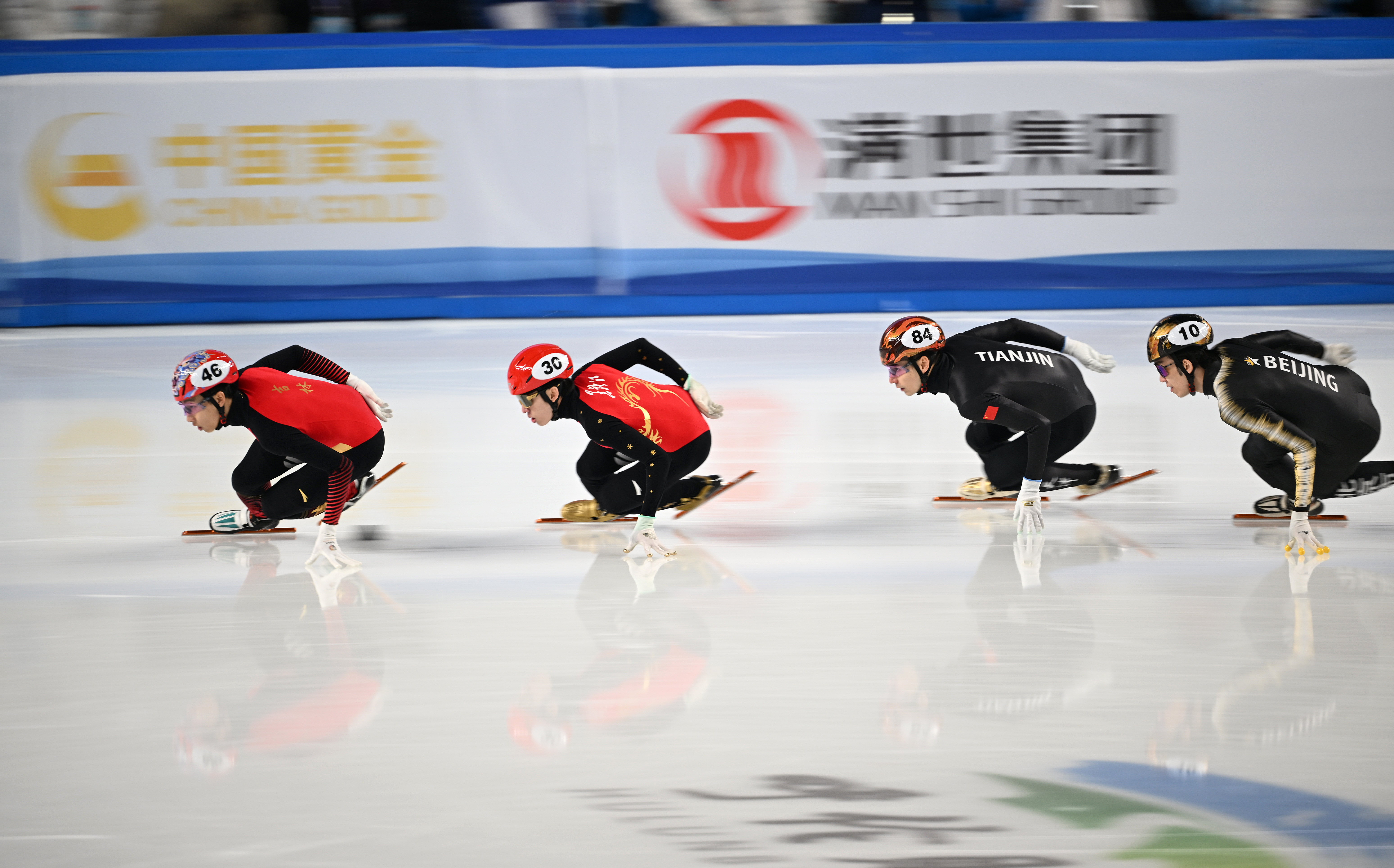 随后进行的接力比赛更是群雄争霸。在公开组女子3000米接力决赛中,黑龙江队、辽宁队、山东队、吉林队入围A组决赛,由冬奥会冠军、老将范可新领衔的黑龙江队以4分13秒075的成绩将金牌收入囊中。包含冬奥冠军武大靖、任子威、刘少林、刘少昂、林孝埈等在内的公开组男子5000米接力决赛则是当日的收官战,也是最受瞩目的一战,最终,由韩天宇、贾海东、任浩博、孙龙和武大靖组成的吉林队以6分46秒211的成绩获得冠军。