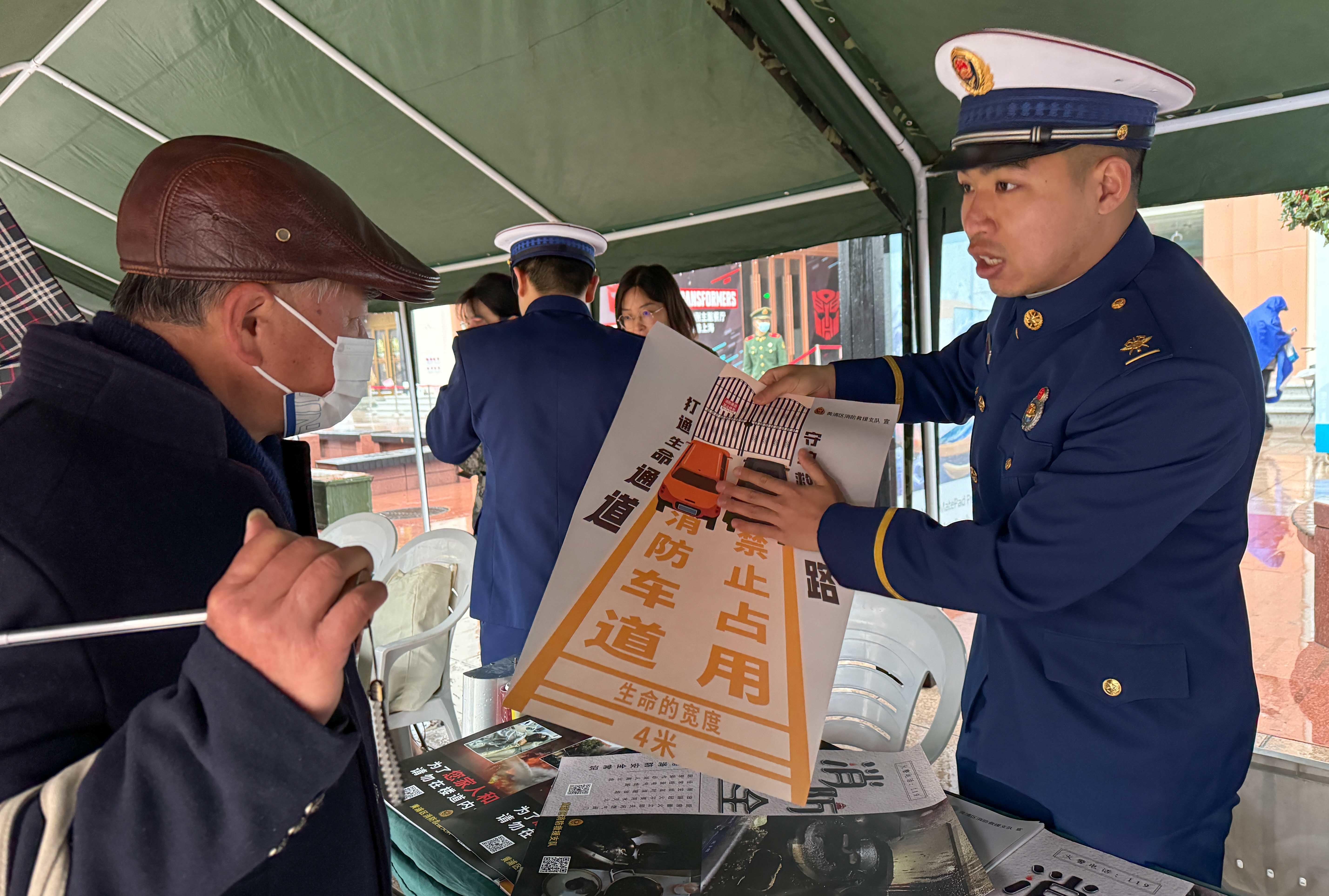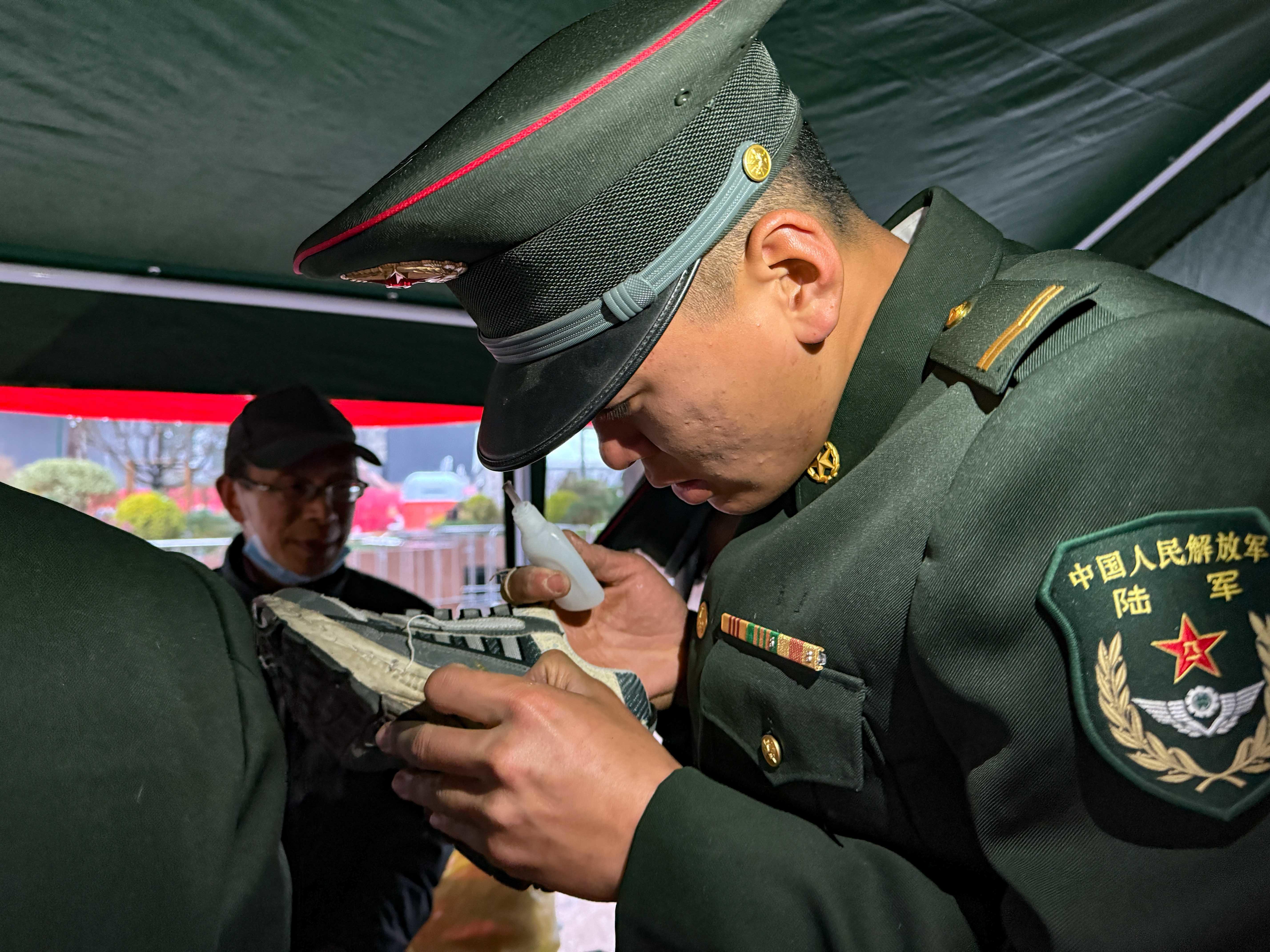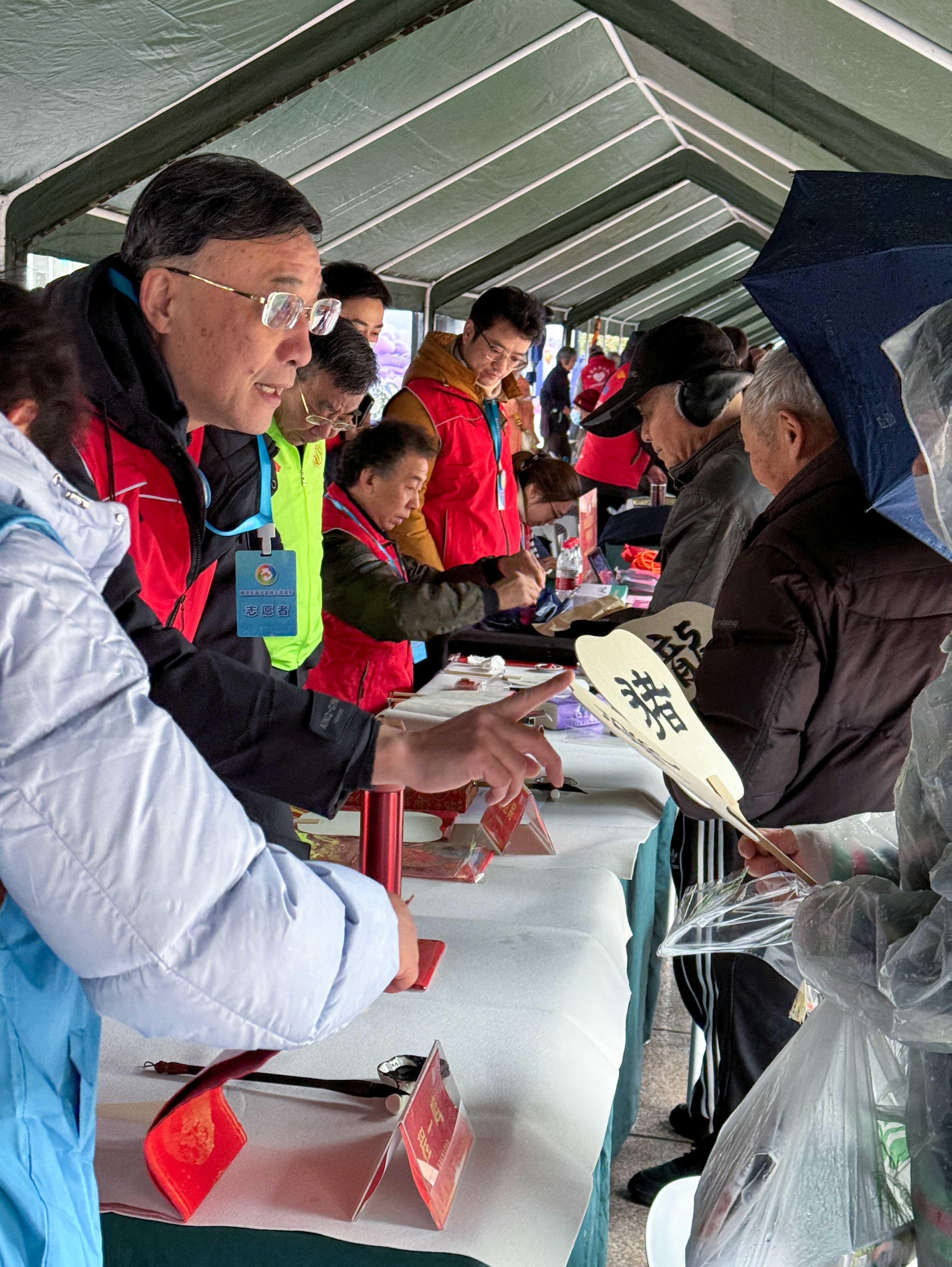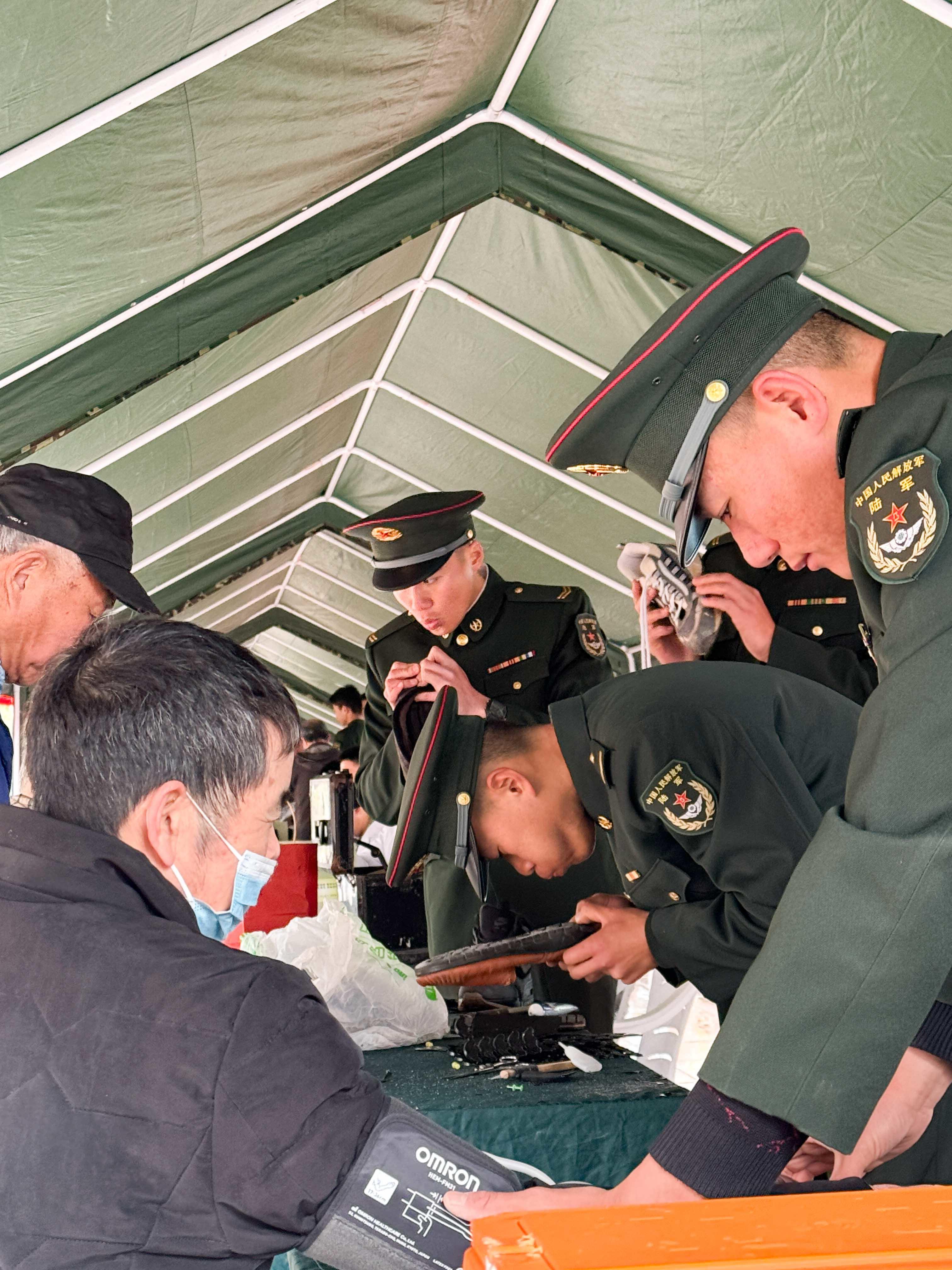 迷彩防雨大棚一字排开,军地众多单位服务摊位前人头攒动,志愿者们热情洋溢,服务现场热火朝天。