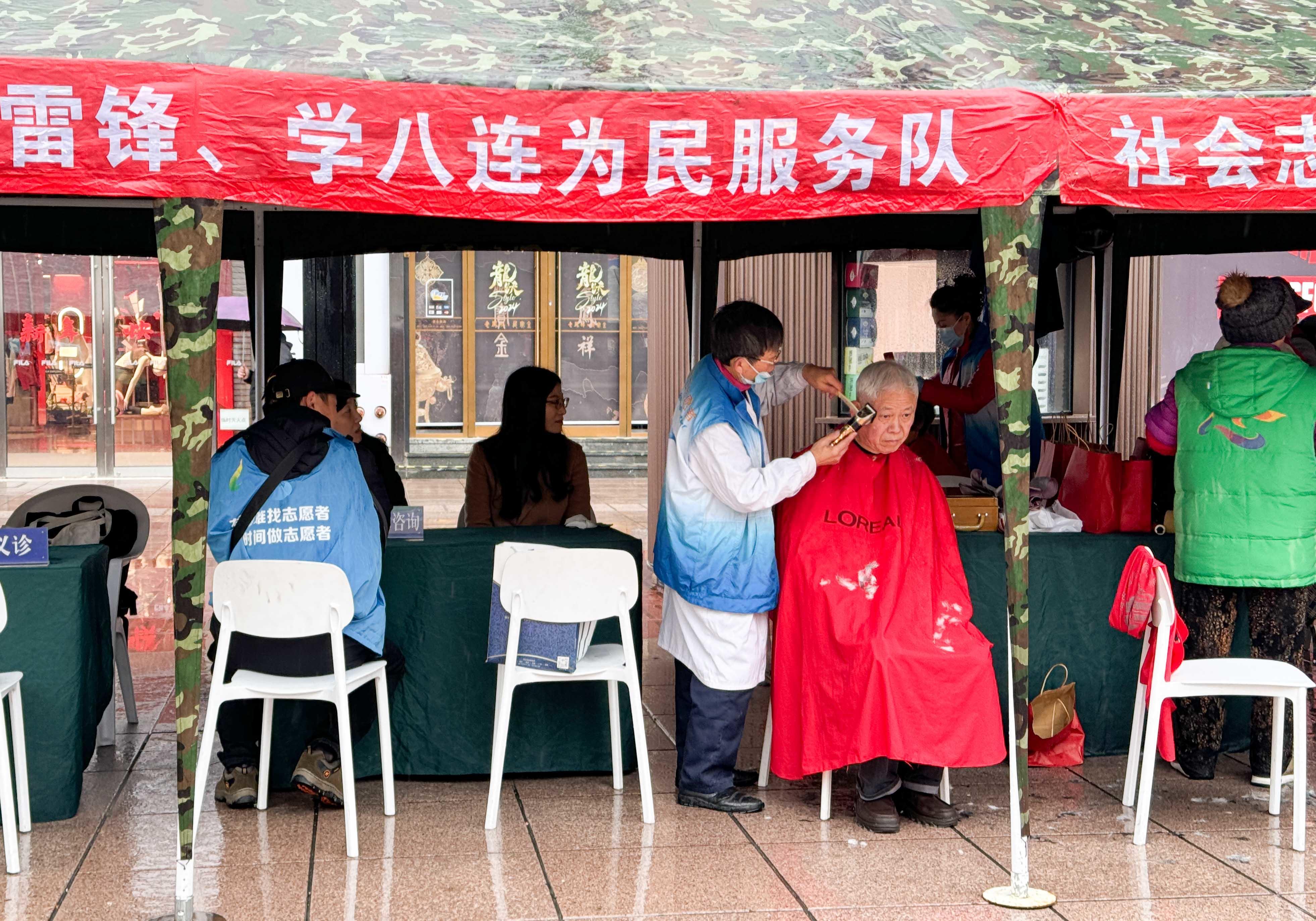 服务项目涵盖了理发按摩、量血压、健康体检、插花编织、缝纫修鞋、法律咨询、消防知识宣传等几十余项。