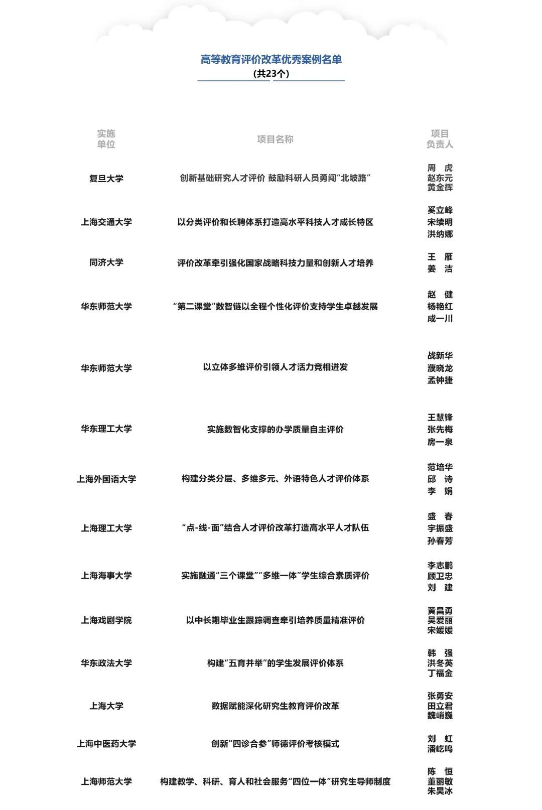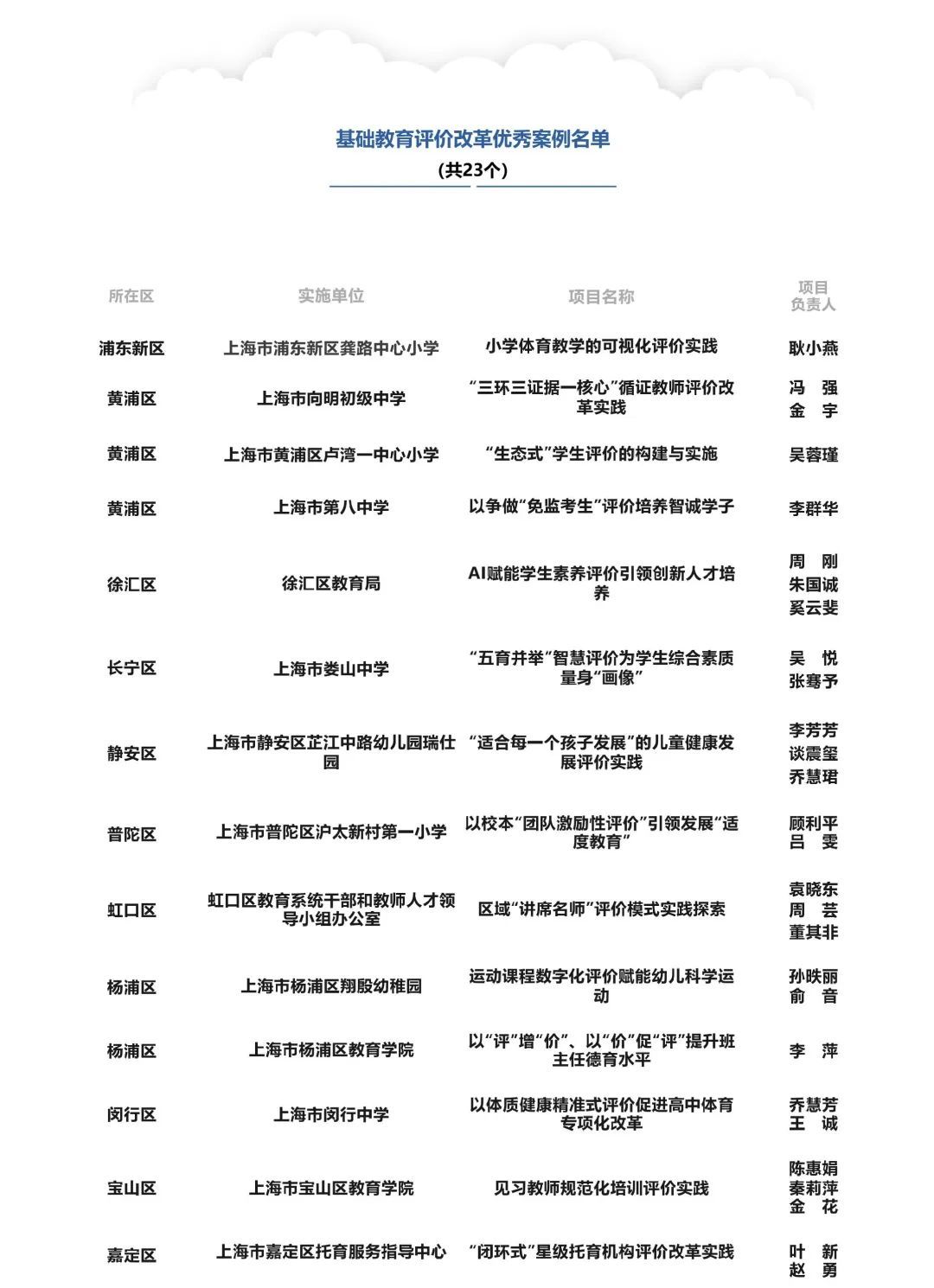 为总结推广改革经验,上海市组织在沪各级各类教育单位积极申报改革典型案例,综合考虑前瞻导向、实践创新、实际效果、推广价值等因素,经单位推荐、函评初筛、会评复审等程序,最终46个案例入选“2023年度上海市教育评价改革优秀案例”,现予公布,一起来看名单吧!