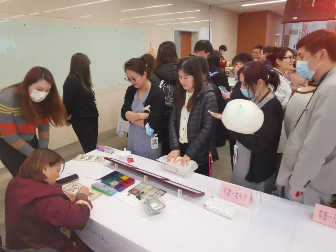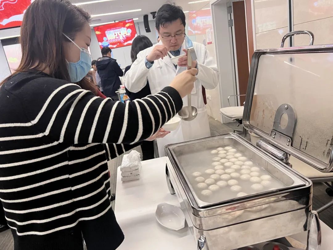 活动现场缤纷多彩,从猜灯谜到龙凤字创作,再到糖画、画人像、衍纸等传统工艺体验,约200名医护工作者积极参与其中。