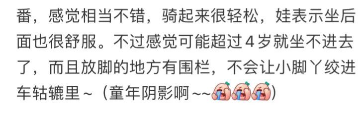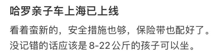 这个春节, 上海的大街小巷处处可见龙元素, 不少宝妈宝爸计划带着孩子 来一场城市里的寻“龙”之旅, 其中, 就有不少人打算用“City Ride"的方式 带着孩子邂逅街角的“龙”味。 还记得静宝在去年国庆期间介绍过的亲子共享单车吗?自2022年起,多地的哈啰“小蓝车”出现了加装“宝宝椅”的版本,如今,在上海街头也出现了这样的亲子共享单车。 自去年年底,陆续有市民在社交平台上分享在上海偶遇“亲子车”的经历,新奇之余也有不少市民愿意扫码“尝鲜”。 至于儿童后座的大小,据几位网友的分享,“两岁半的娃坐进去很舒适、四岁的娃冬天穿了厚衣服有点紧、超过四岁可能进出就比较困难了。” 对于亲子共享单车的出现,上海网友们有“点赞”也有担忧。一些网友表示,经常遇到“心大”的家长“带娃骑行”时就把孩子放在车前框里,或者卡在车前杠上,每每看到都十分揪心,共享亲子单车的出现和普及能够相对减少这种隐患重重的现象。 一些宝爸、宝妈表示,自己平时也会在网上购买可以装载在车上的儿童座椅,方便自己在骑车时带上孩子,共享单车的运营方推出亲子单车是响应了广大家长的实际需求。 一些网友则开始担忧, 共享单车后座带娃 符合上海市的交通规定吗? 针对这个担忧,记者查阅了相关规定: 根据《上海市非机动车管理办法》第三十一条规定,自行车、电动自行车载人,应当遵守下列规定: (一)驾驶自行车、电动自行车限载1名12周岁以下的未成年人; (二)驾驶自行车、电动自行车搭载6周岁以下未成年人的,使用固定座椅; (三)16周岁以下的未成年人驾驶自行车不得载人。 此前,哈啰单车在其他城市大规模投放试点亲子共享单车时,也特别提示:“此款共享单车骑行者必须年满18周岁,儿童座椅可供年龄在2—9岁、体重为8—22公斤的儿童乘坐。” 总之,在租借骑行亲子共享单车时,骑行者一定要检查车辆性能,将儿童后座留给适龄的儿童,在骑行过程中遵守相关交通规则。 不过,据记者观察,目前上海街头出现的亲子共享单车并不多,正如一位宝妈所说,“需要碰运气。”后续是否会有更多的投放也需要根据市场的反应来决定。 如果在上海街头 遇到了这款亲子共享单车, 你愿意尝试一下吗?