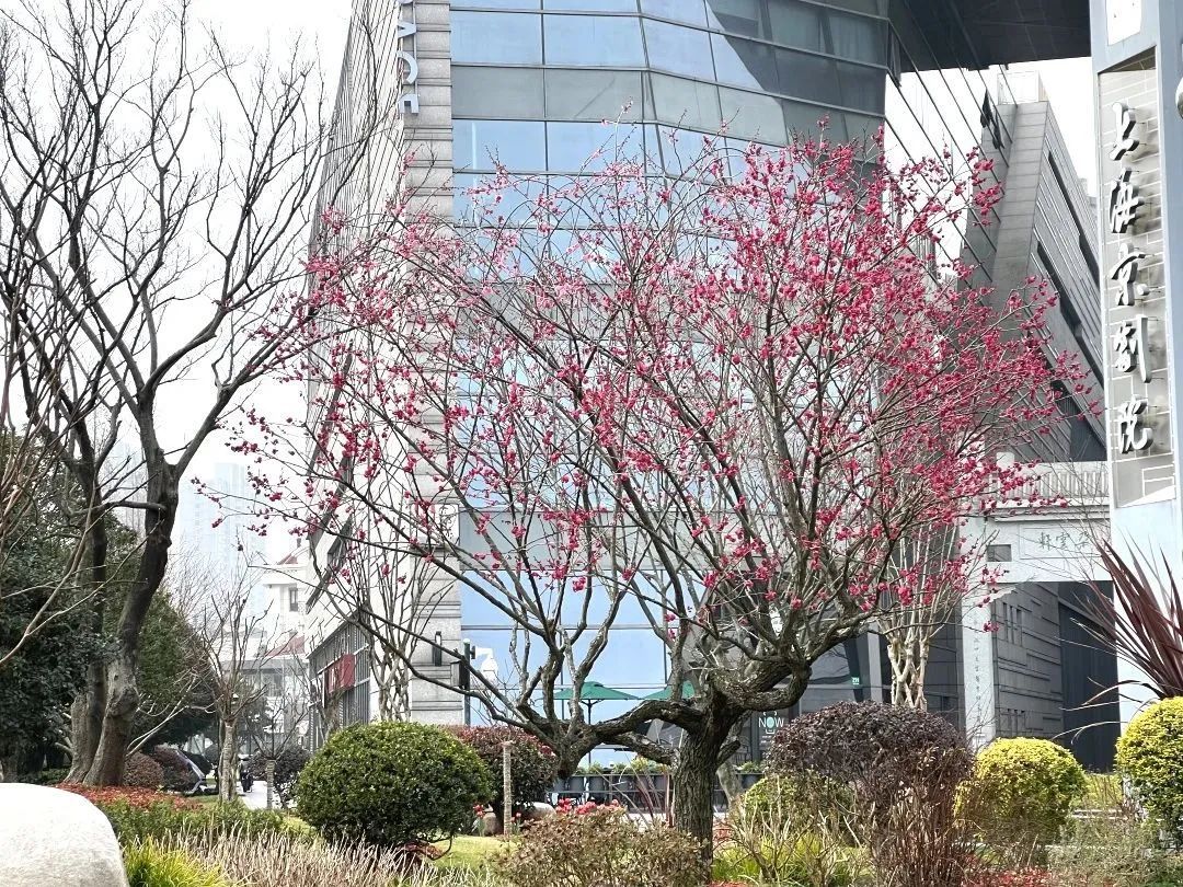 天钥桥路零陵路的梅花悄然开放,为冬日增添了一抹亮丽的色彩,点点红梅疏影横斜,宛如画家手下的工笔画,开得稳重而精致。