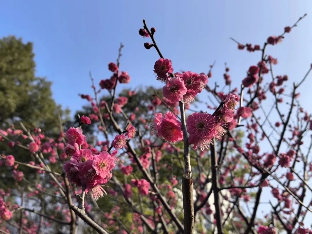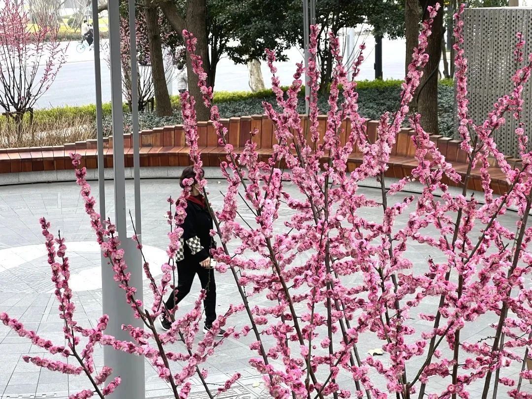 星游城的梅花密集且有层次,漫步小径,看梅花争相吐蕊,高低错落、姹紫嫣红、芳香四溢,浸润在梅花香中,感受自然最美好的馈赠。