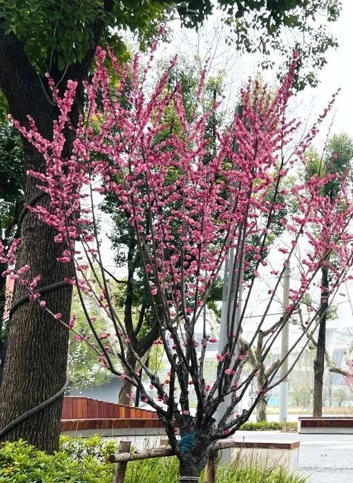 走进桂林公园,梅树夹道、光影斑驳,色彩如锦,浓淡相宜,那层层叠叠的梅花,度过了冬的严寒,迎面而来,堆砌出无限优雅。