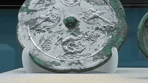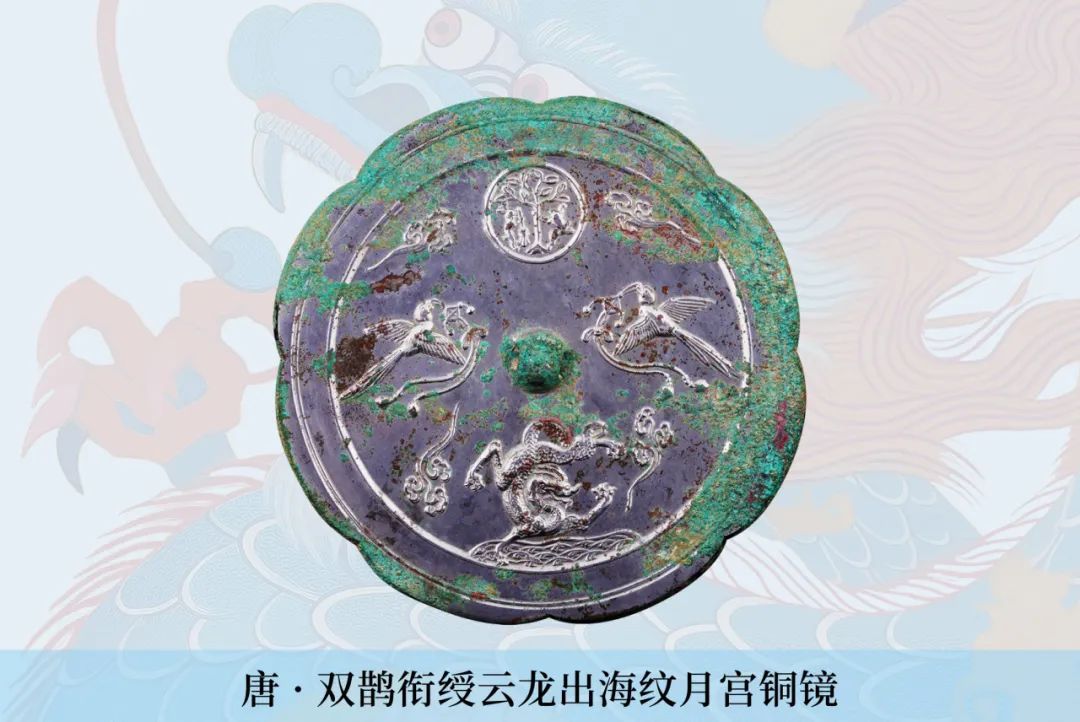 唐双鹊衔绶云龙出海纹月宫铜镜是“辰龙出海”迎春展中的唐代龙文物代表。