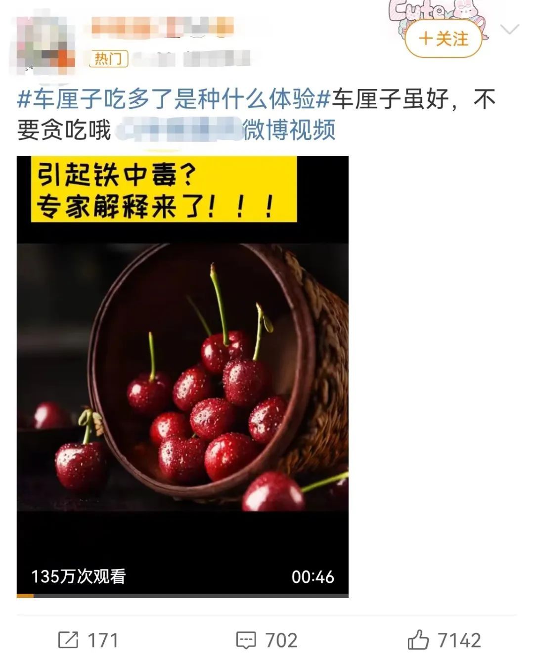 另外,车厘子会引起铁中毒更是无稽之谈。