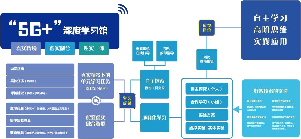 “5G+深度学习馆”基于高中学科教材目录、知识体系分类,以“亲眼看真实现象”“动手做真实实验”“真切领略真实情景”为抓手,还原数学、物理、化学、工程、人工智能等学科中经典实验。同时,学习馆拥有数字化学科基础资源、专题学习资源、交互式全息3D数字资源等。