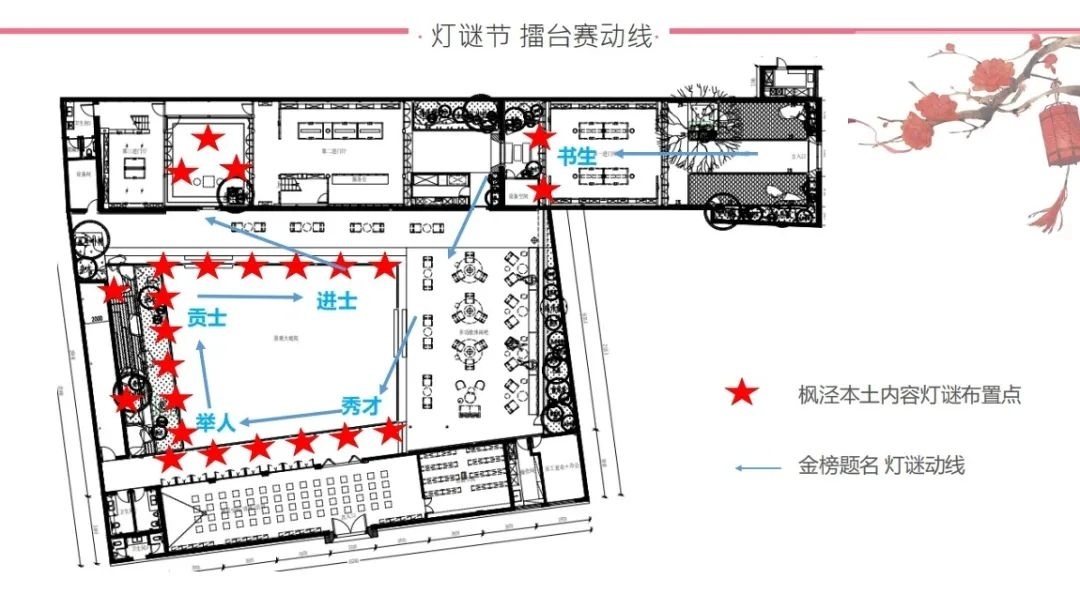 ✓ 书生灯谜区:所有顾客均可参与,答对一列即通关成为秀才,可免消费进入户外庭院。