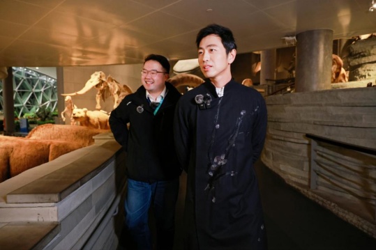 除了现场分享之外,活动特设“探馆”环节。“水哥”王昱珩和上海科技馆自博展教中心网络科普部副部长、“带馆主播”余一鸣一同打开自博馆藏品库房大门,解读藏品背后的故事,并与其他工作人员一同在龙年生肖特展、自博经典参观路线中穿梭时空,从恐龙化石聊到自然科学,在自然博物馆亿万年的生命演化中找寻“龙”的足迹,在自然演化与科技创新的交织中感受生命的磅礴力量。