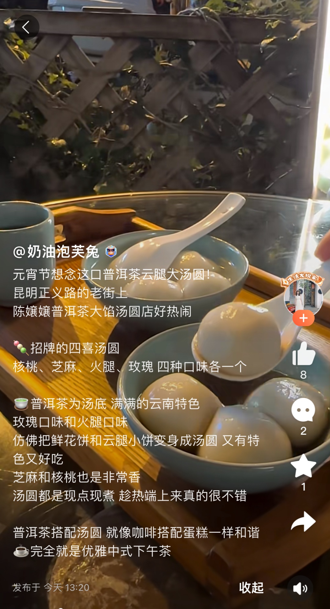 将视线转向云南,“普洱茶汤圆”成为不少店家自春节以来店内销售量最高的产品,“一口茶汤,一口汤圆,清新不腻,回味无穷。”一位茶馆老板这样形容道,“茶+汤圆”的新式组合,让消费者在品尝云南好茶的同时,体验到一种新的可能性。
