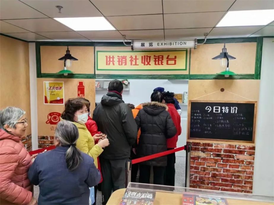 为了让不同年龄层的居民都能玩得尽情尽兴,文化中心在一楼设置了“时光旅行”“翔龙欢腾迎新年”“龙年传统游戏”“手工与影音”四大主题活动。其中,“时光旅行”还原了70年代供销社的场景,不少老物件勾起了阿姨叔叔们的“回忆”。