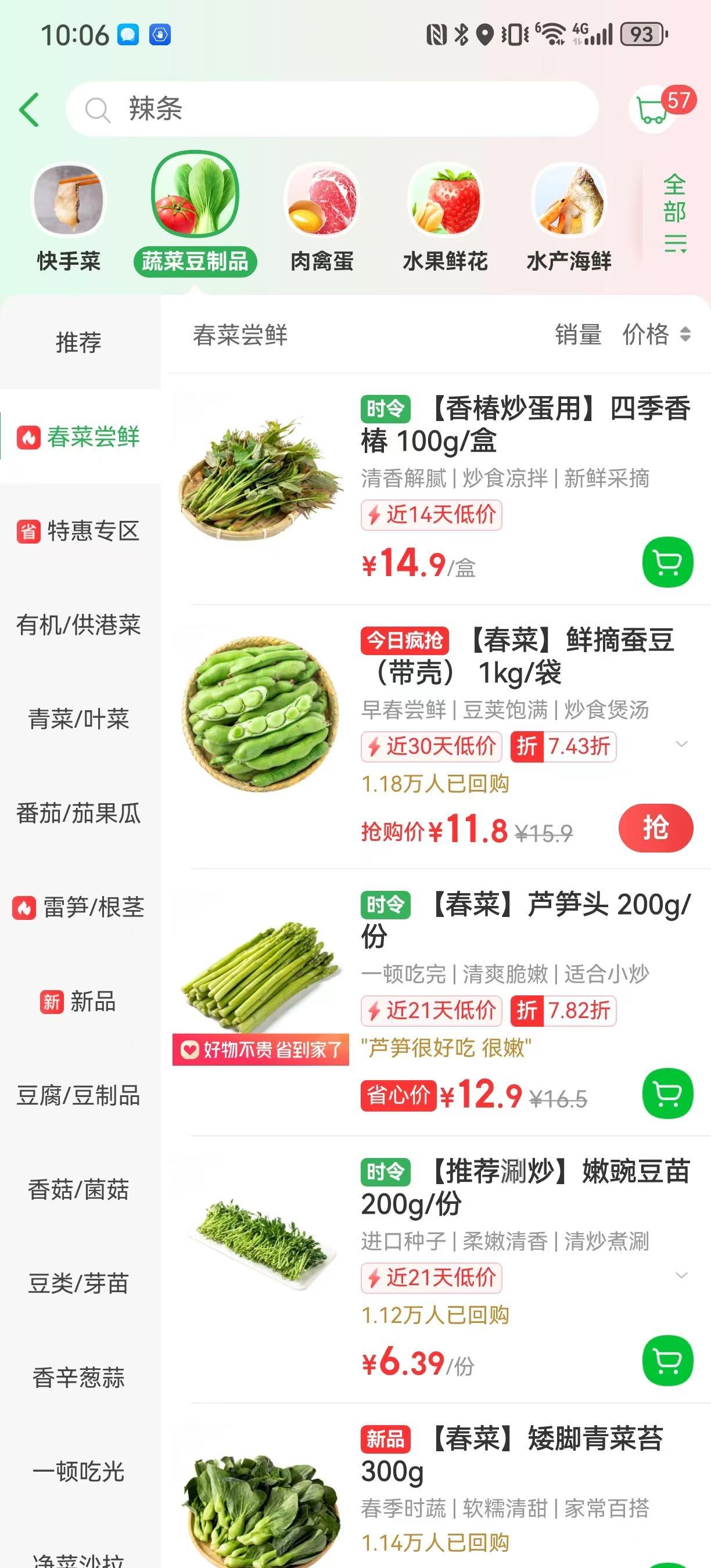 颇为有趣的是,不同地区对春菜的喜好也有所不同。网购平台数据显示,今年开春以来,江浙沪消费者春日餐桌上的常客是香椿、蚕豆、雷笋、春韭等传统春菜“四大金刚”,华北消费者喜欢用香椿和春韭来解“春馋”,而讲究极致新鲜的广东老饕们,则喜欢选购空心菜、枸杞头、潮汕红蒜苗、木耳菜等。