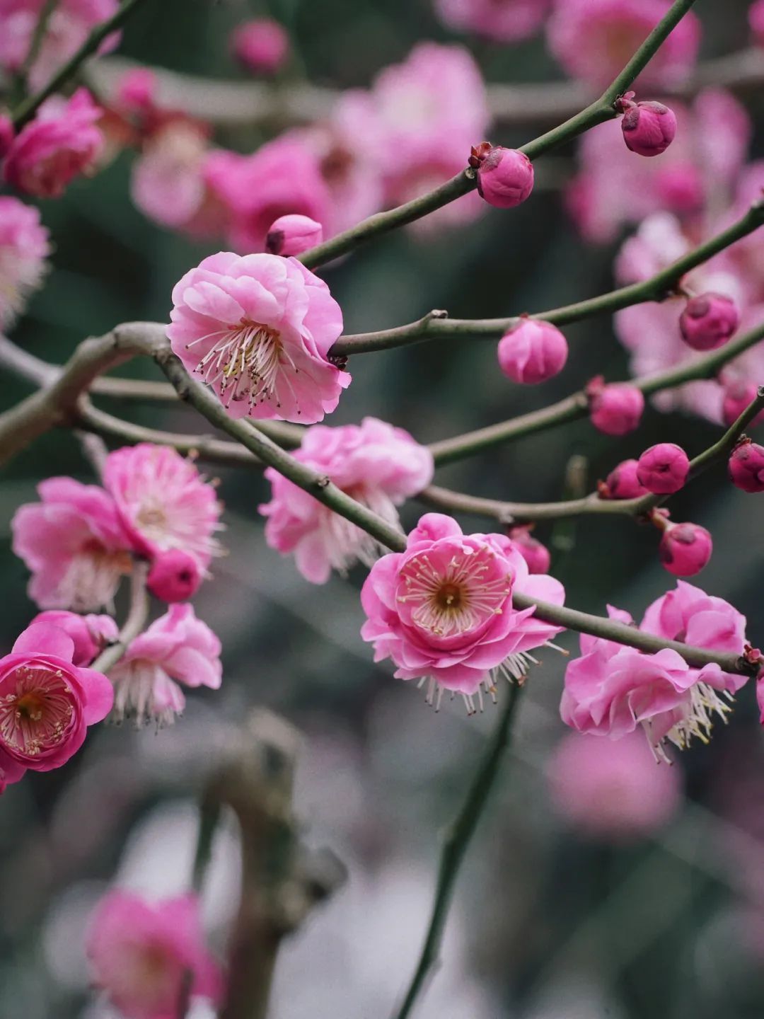 “今年的梅花是在二月中旬集中开放的,和往年相比确实要迟了一些。最佳观赏期要到2月下旬至3月,到时梅花林、山门阁天池区域的梅花颜色也会更加饱满。”大宁公园方面表示。
